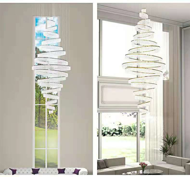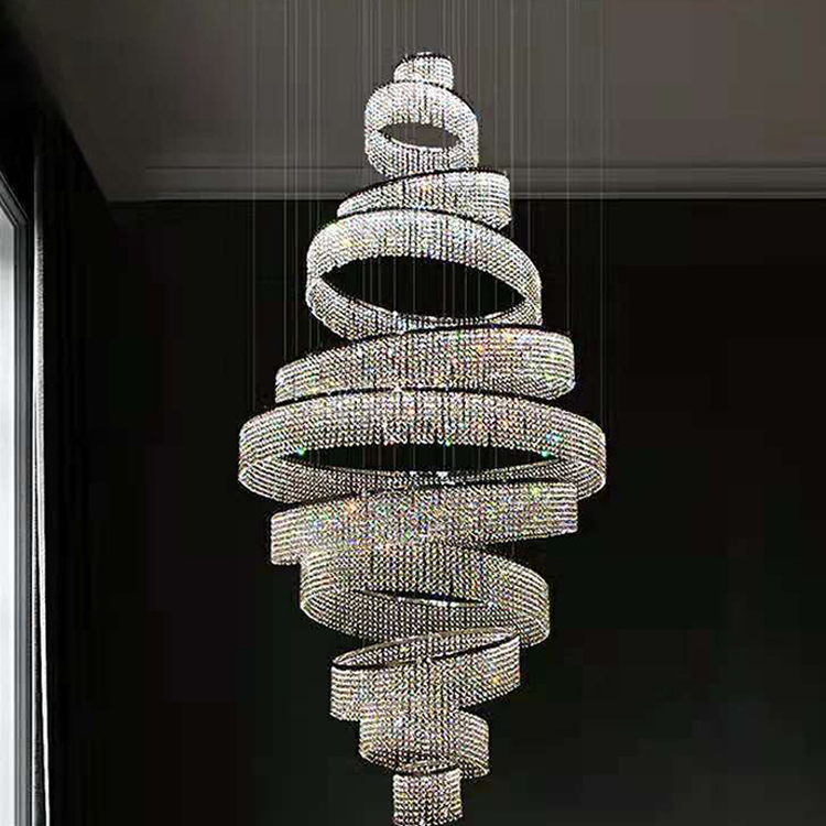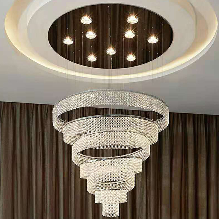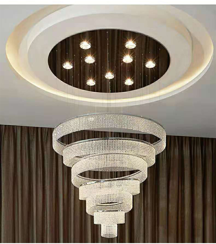 indoor decoration hotel lobby staircase villa crystal led ring luxury chandelier