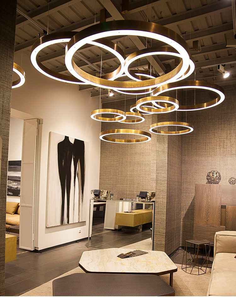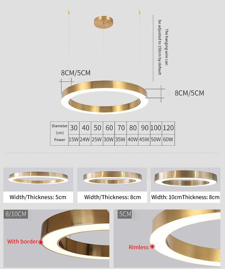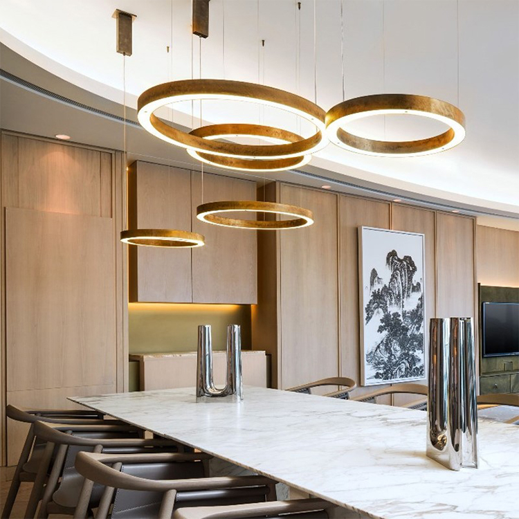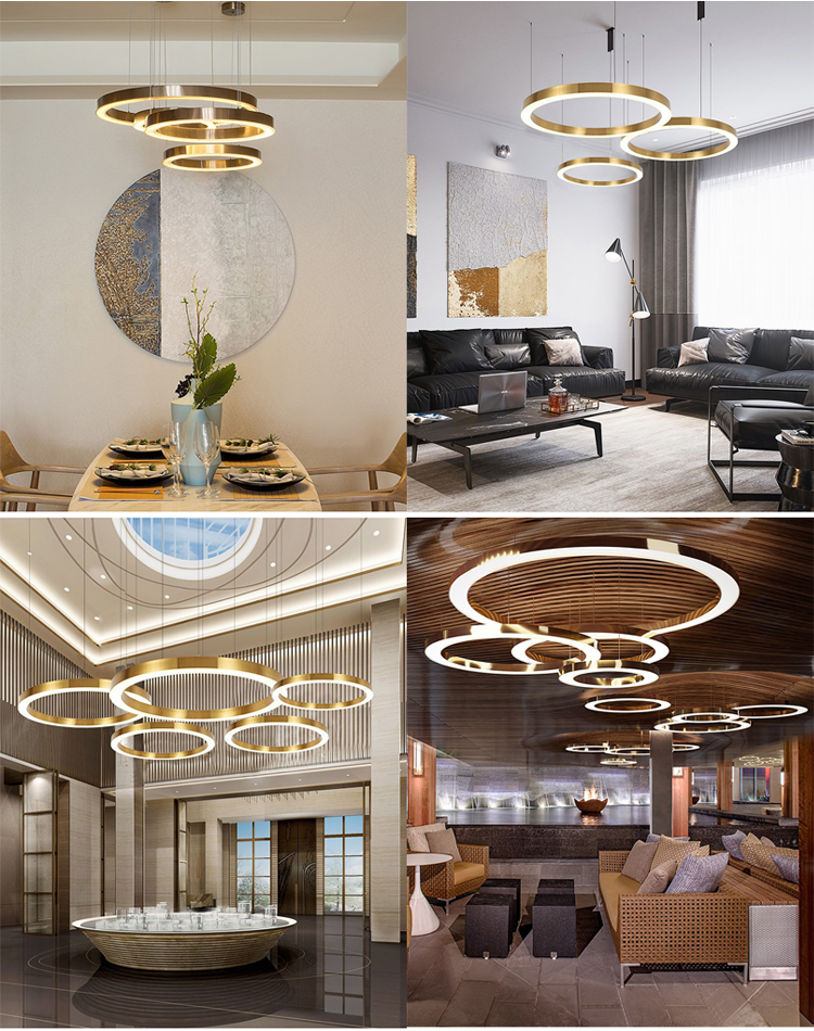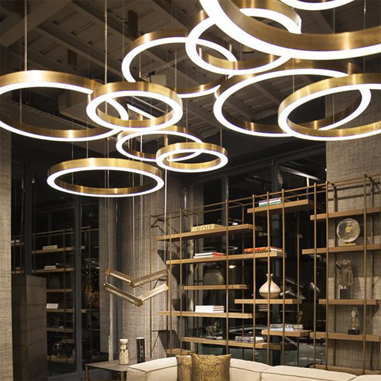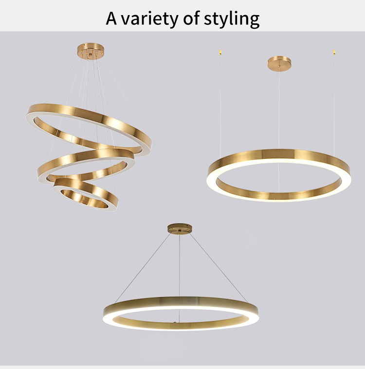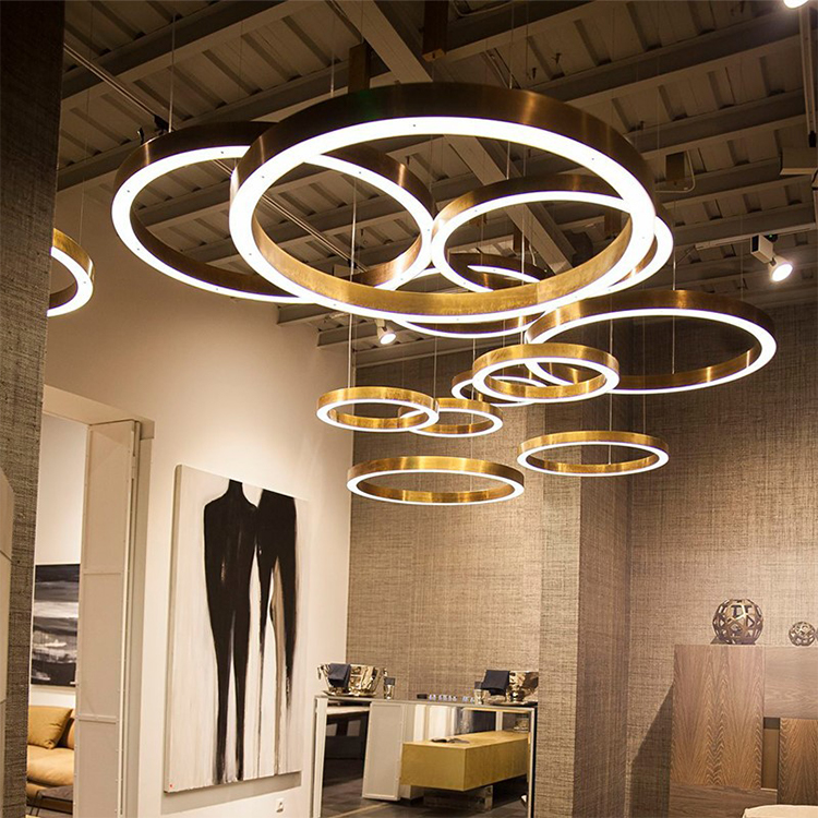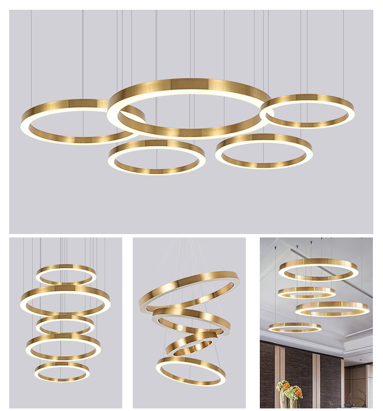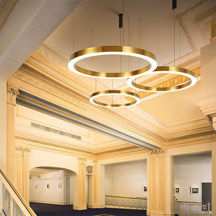 hanging decoration circle rings acrylic gold luxury modern led chandelier light