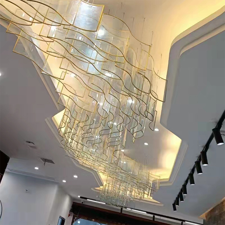 hotel lobby big chandelier luxury modern interior glass pendant lighting