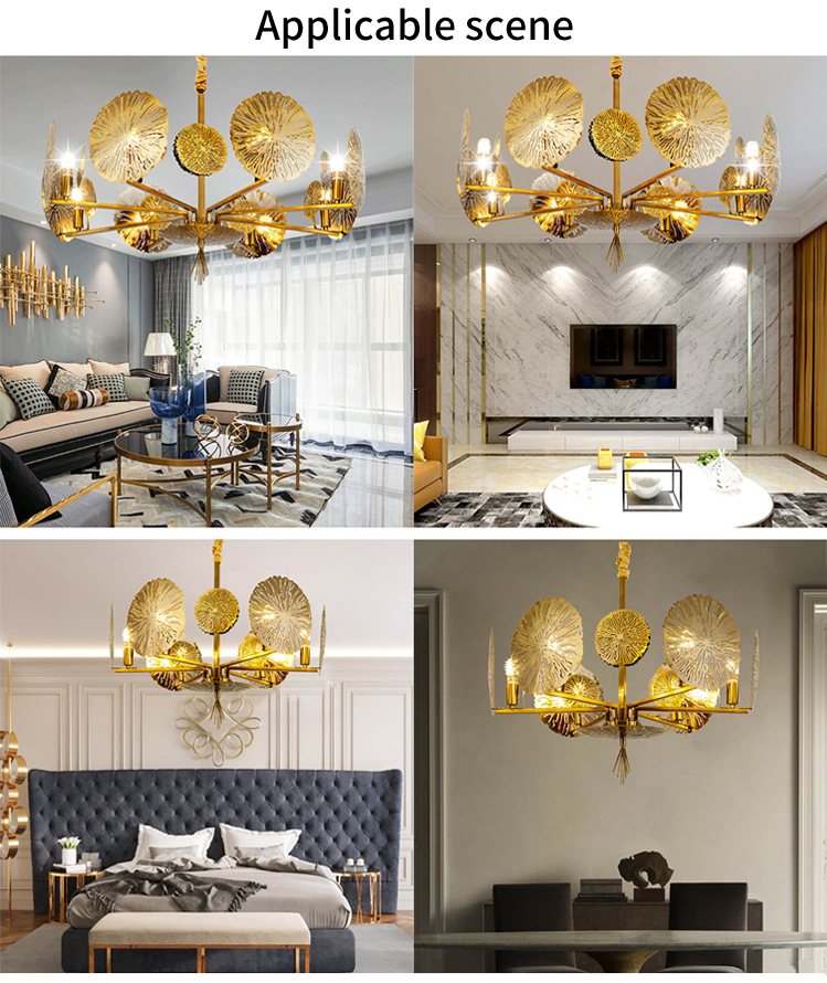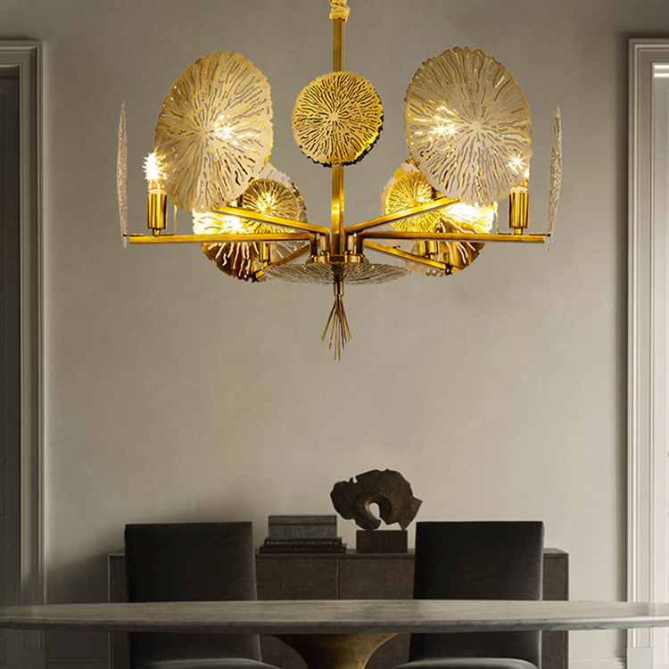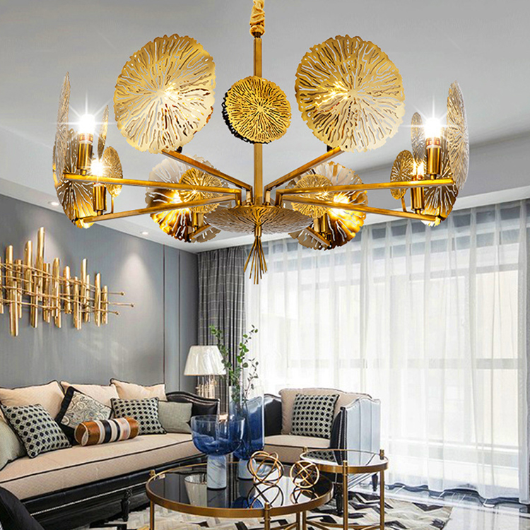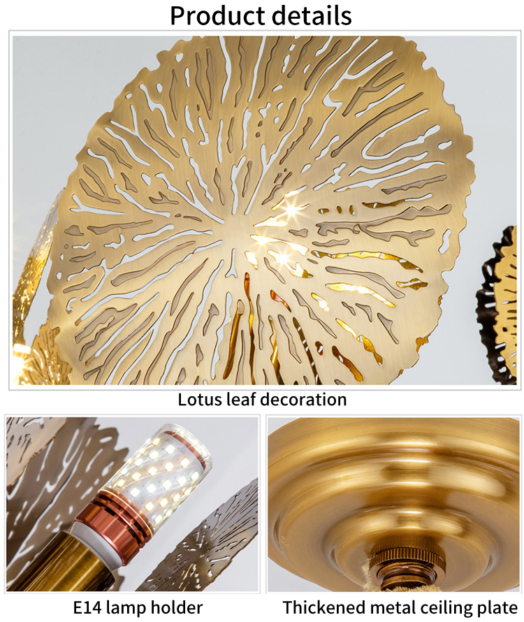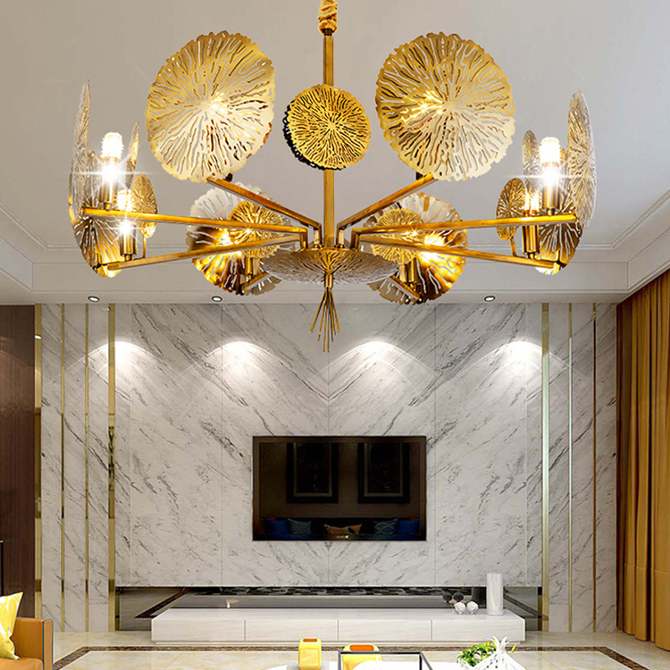 indoor decoration fixtures lotus leaf metal modern chandelier pendant light