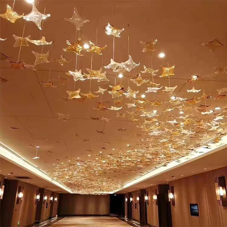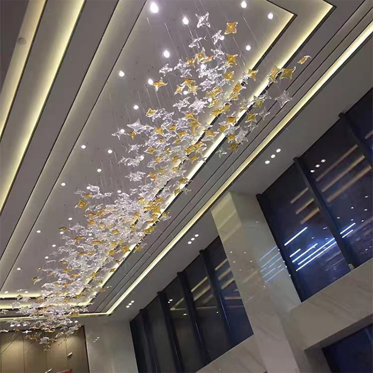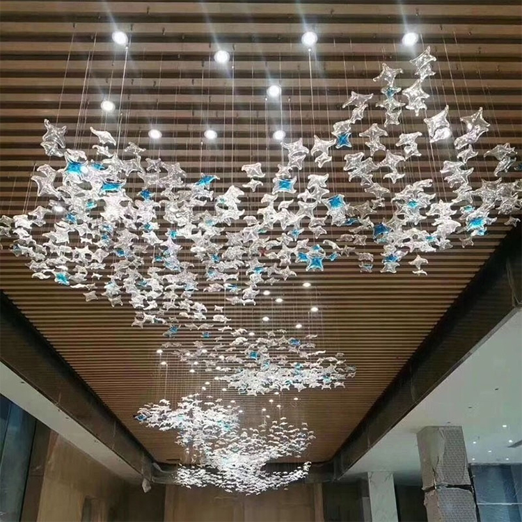 sea star decor show hall aquarium hotel glass custom project led chandelier lamp