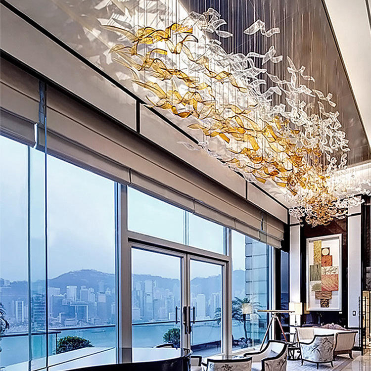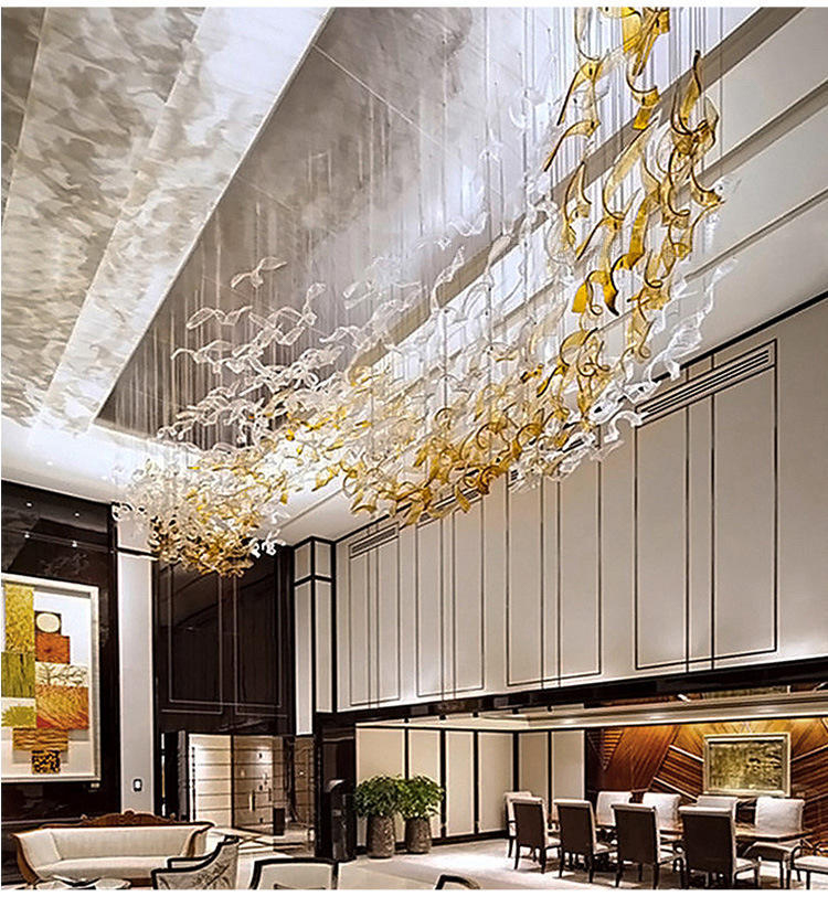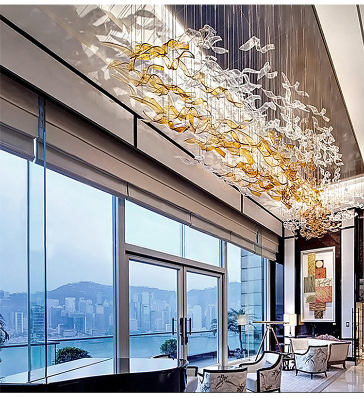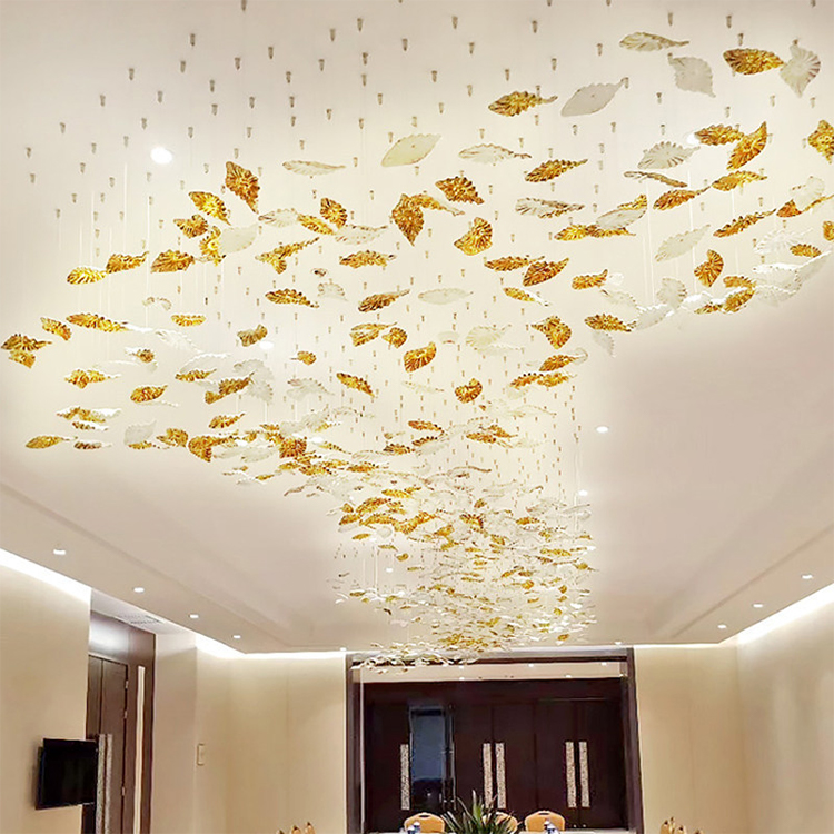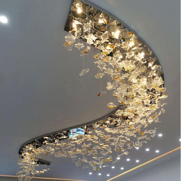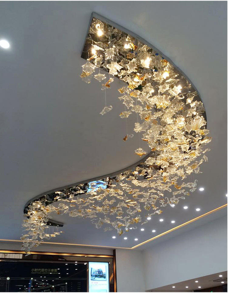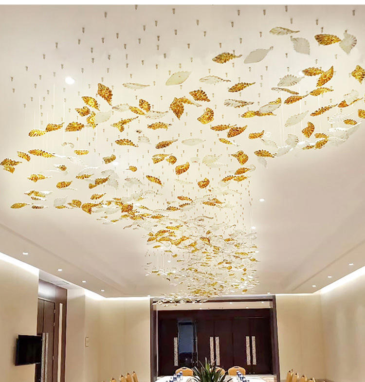 maple leaf hanging light decor banquet hall hotel lobby staircase led chandelier