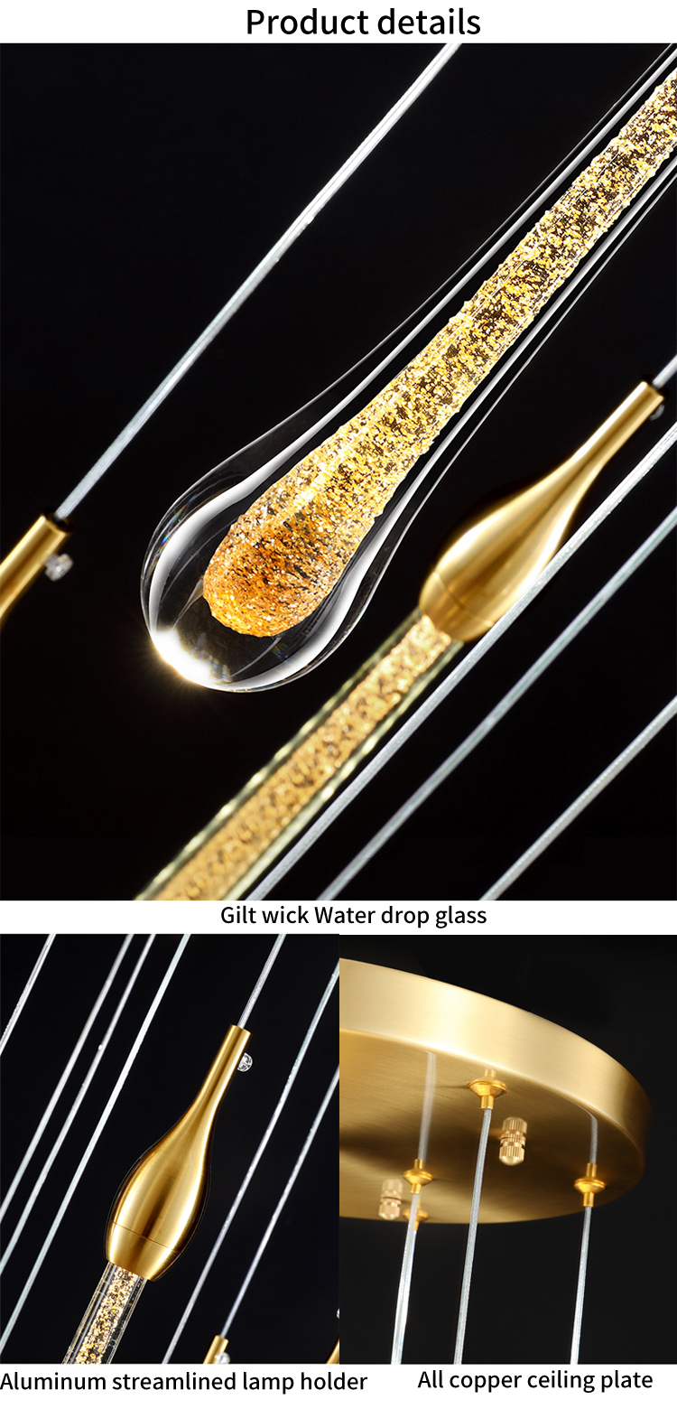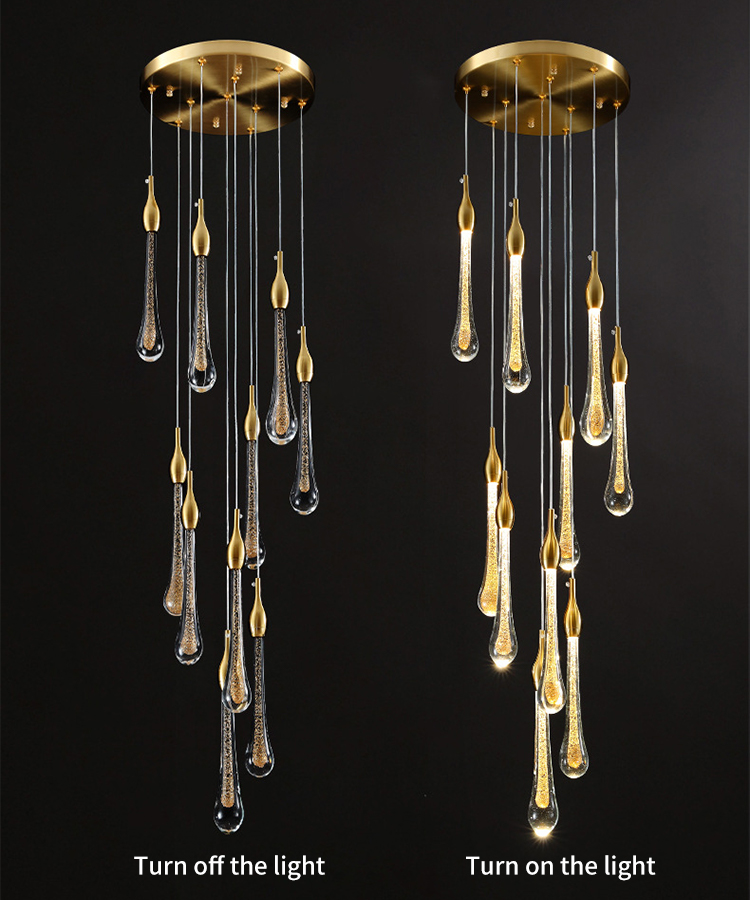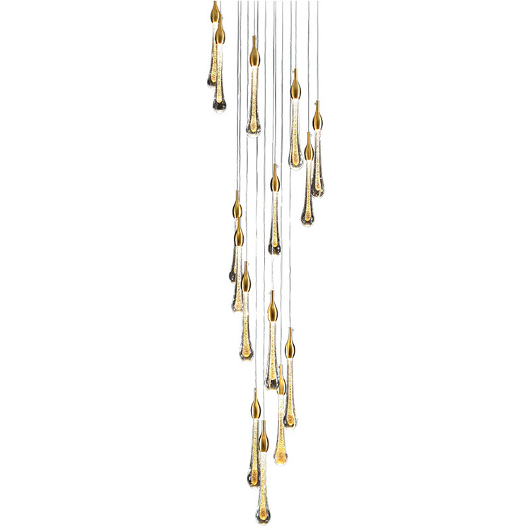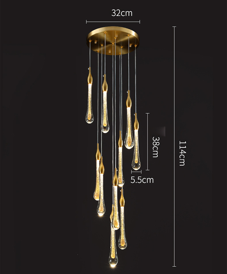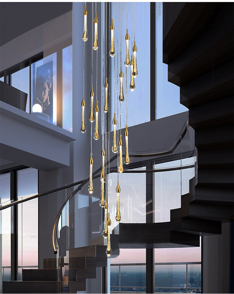 rain drop luxury gold staircase hotel villa modern led chandelier lamp