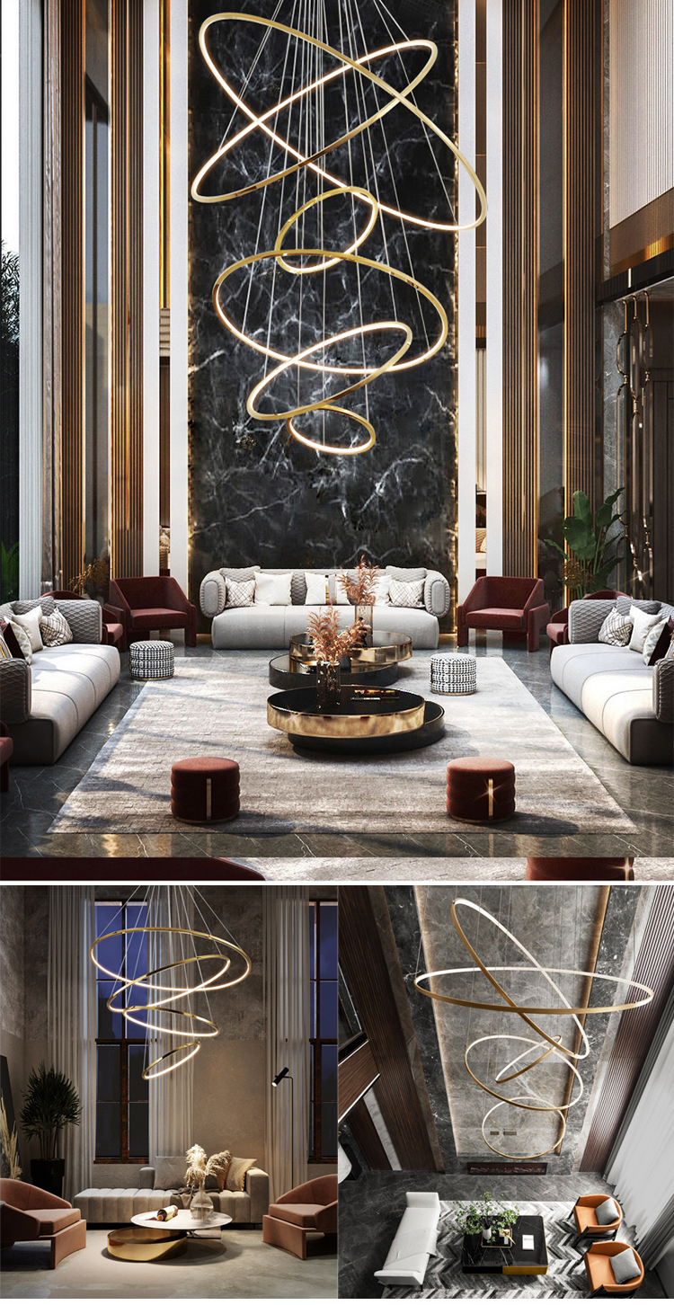 hotel lobby commercial custom project luxury large ring chandelier light
