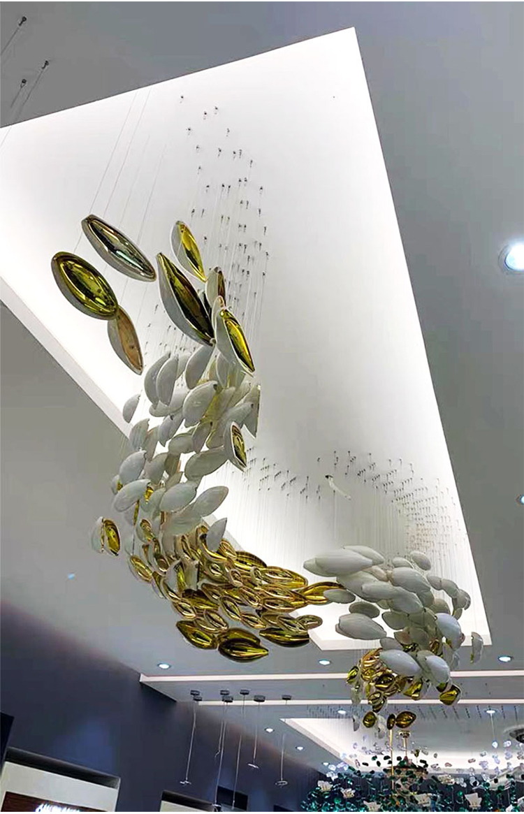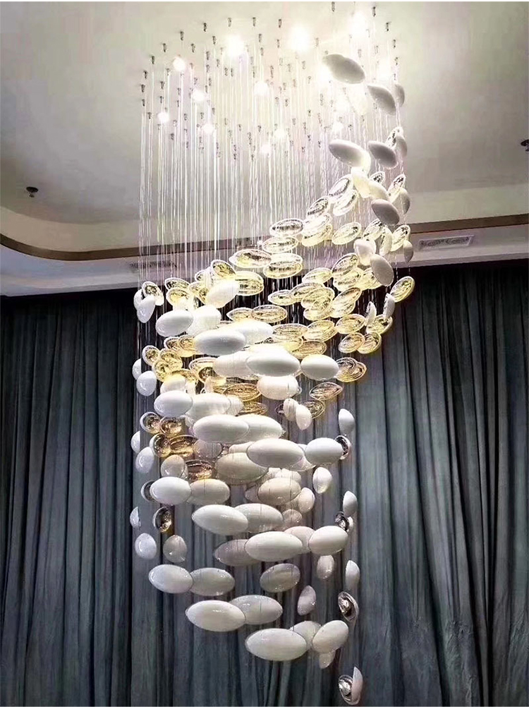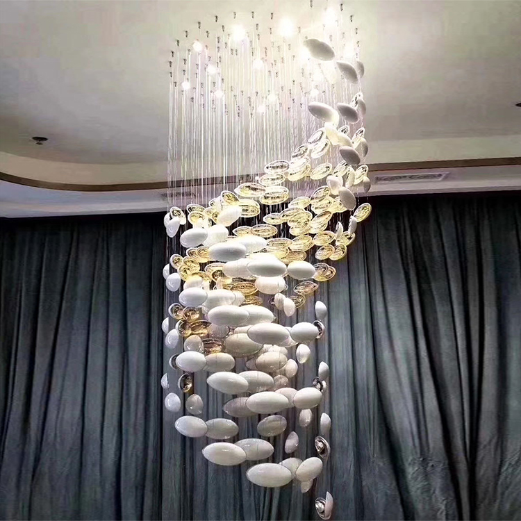 dinosaur egg decorative exhibition hotel stair glass custom led chandelier lamp