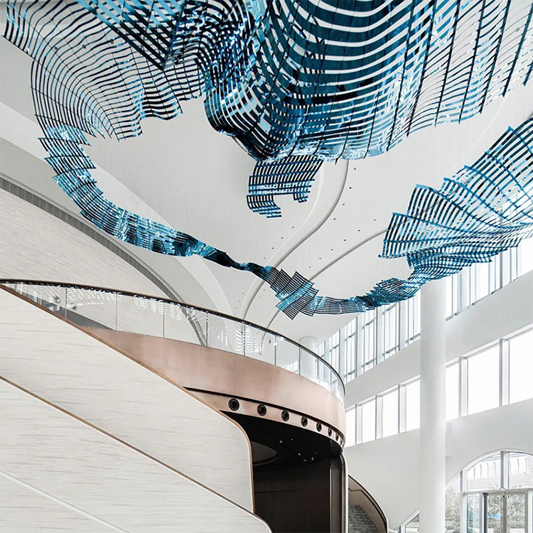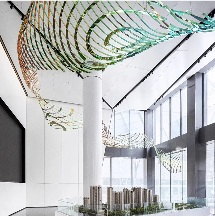 large ceiling fixture decoration lobby ribbon shape luxury project pendant light
