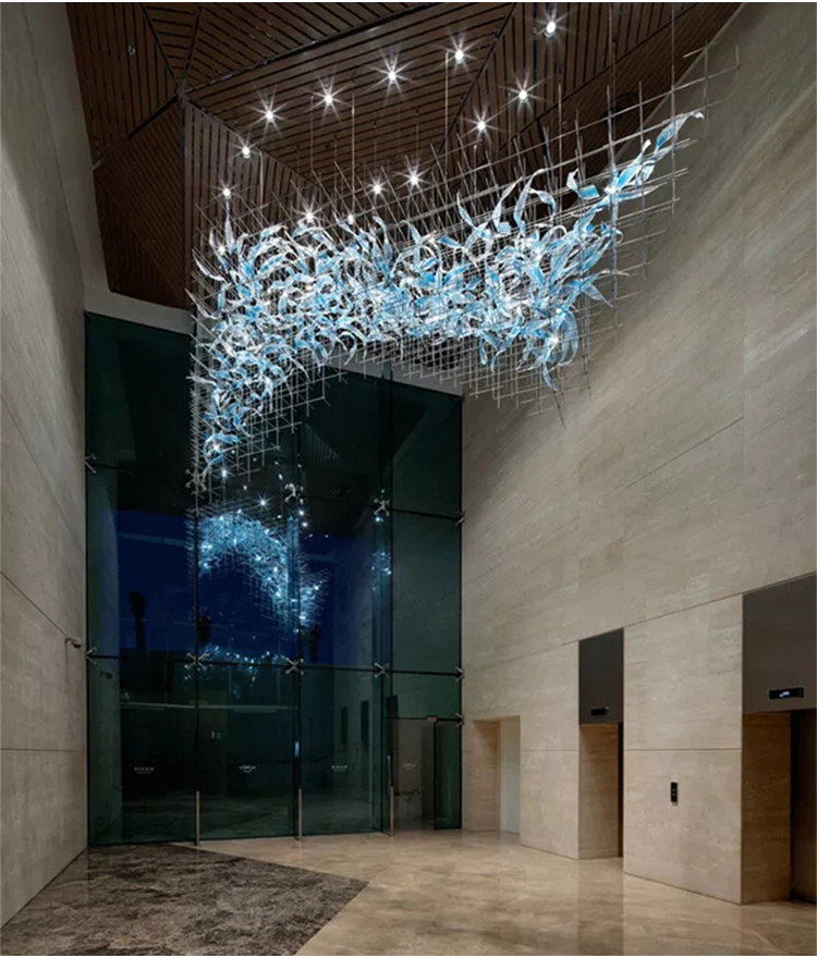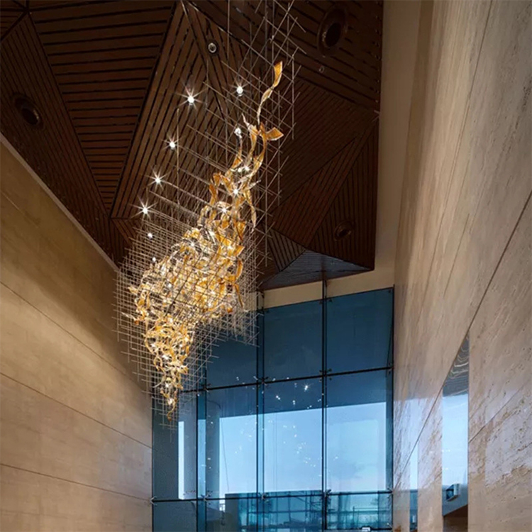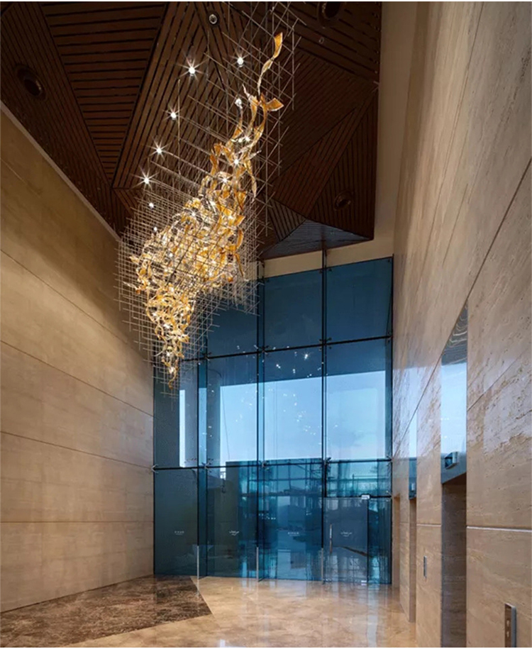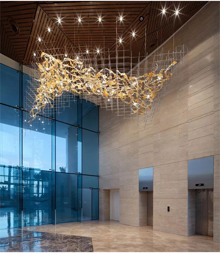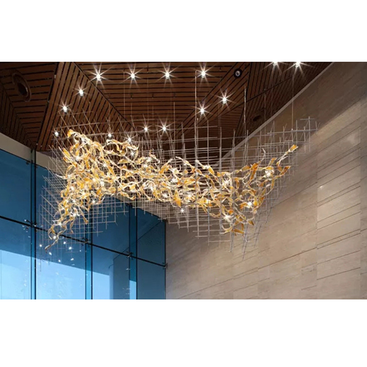 modern decoration hotel lobby glass luxury project led chandelier lamp