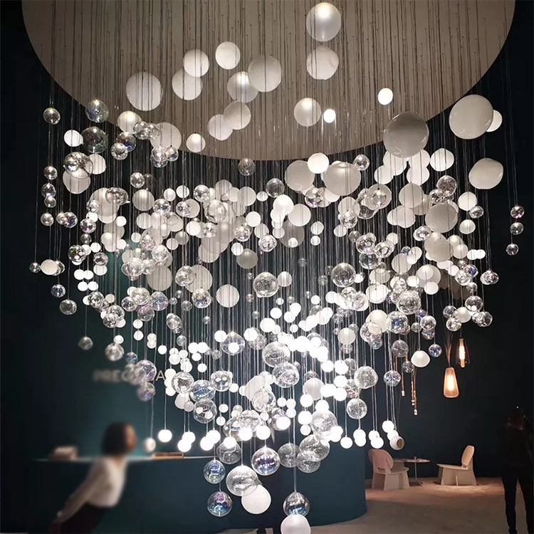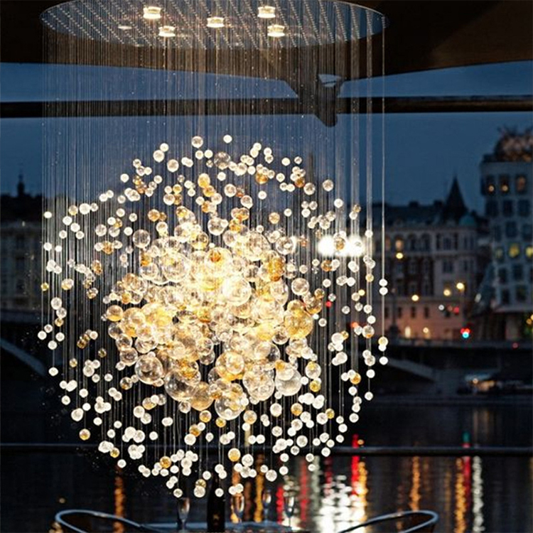 staircase hotel dining hall large long luxury glass ball led chandelier light
