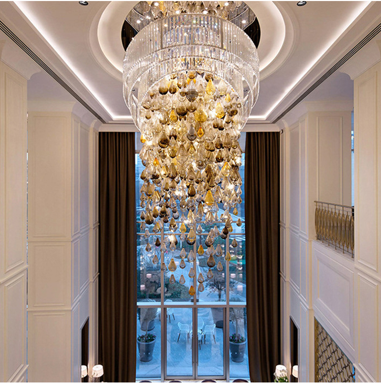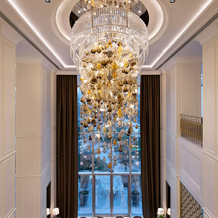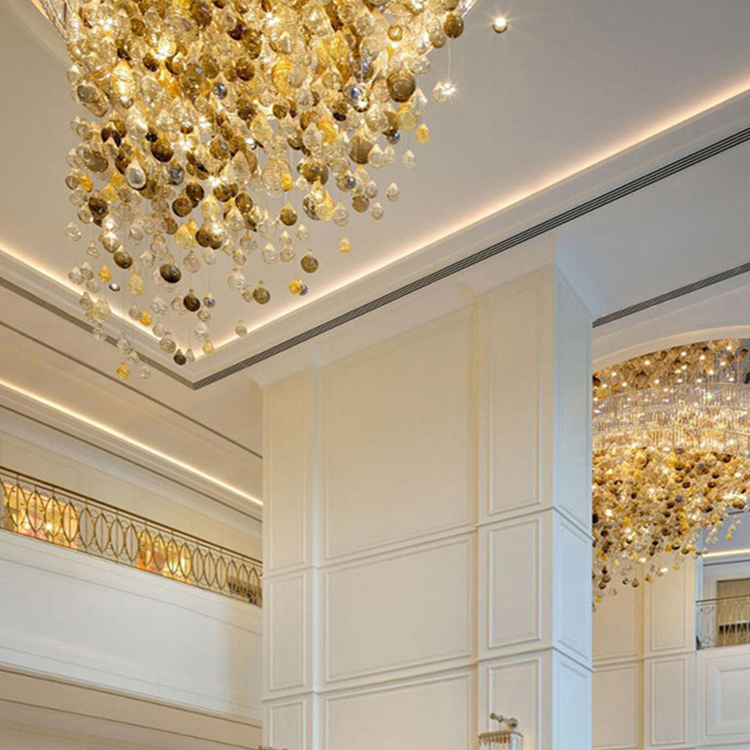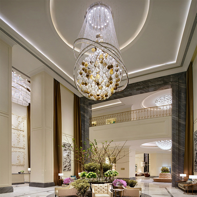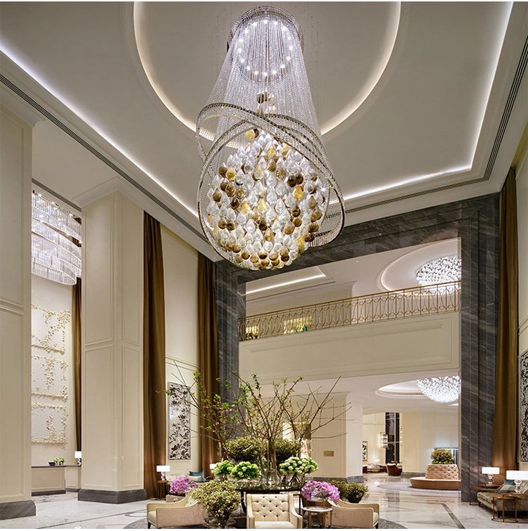 modern art deco big hotel lobby lighting glass crystal luxury led chandelier