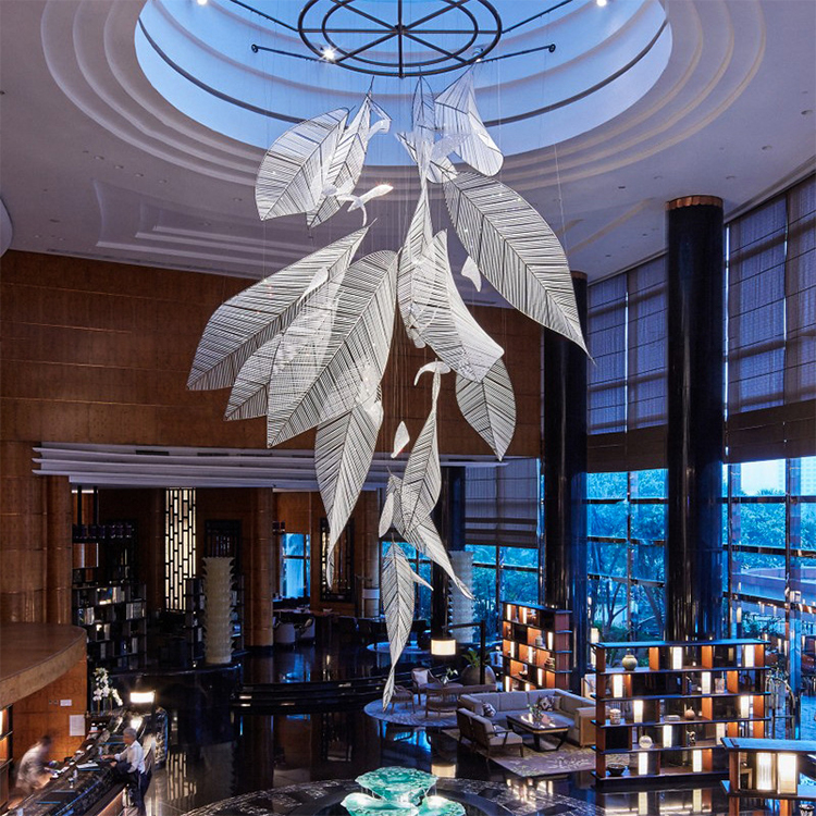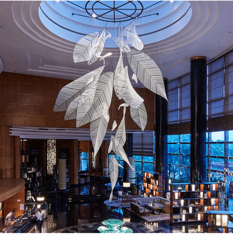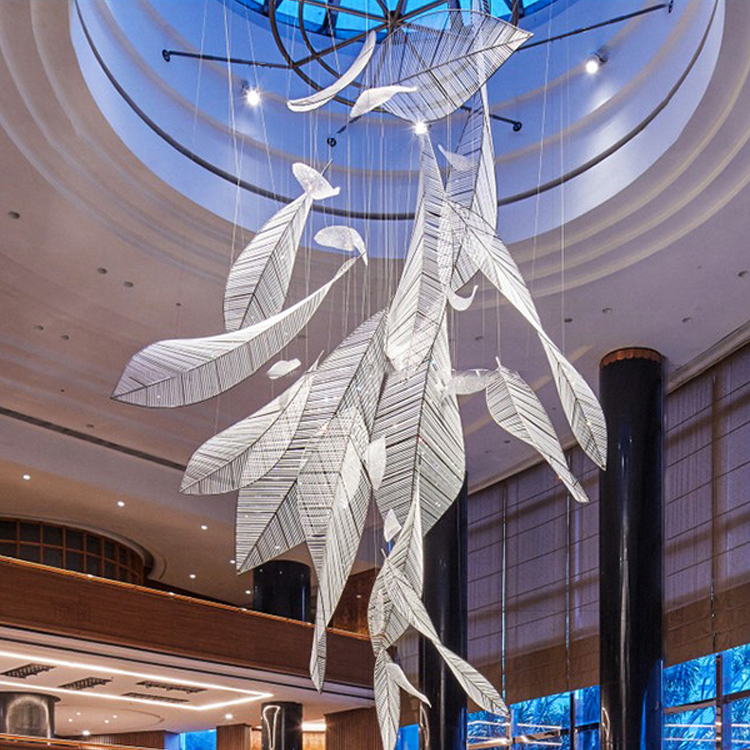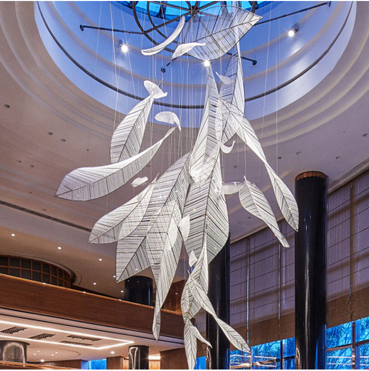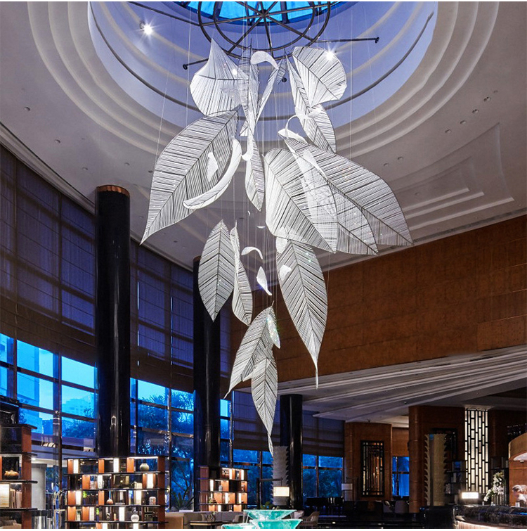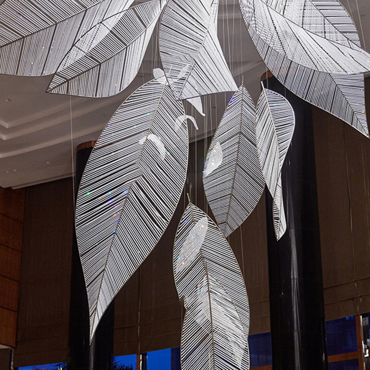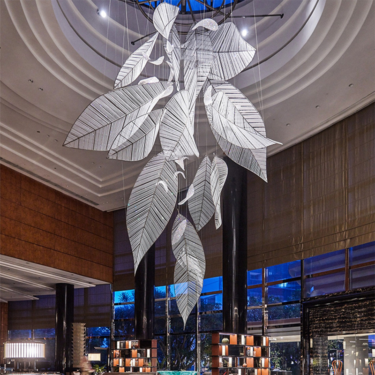 commercial decoration light glass aluminum crystal leaf chandelier