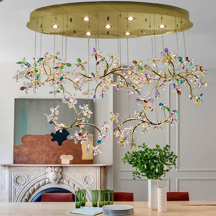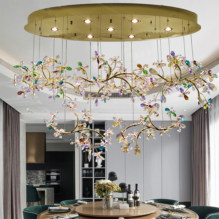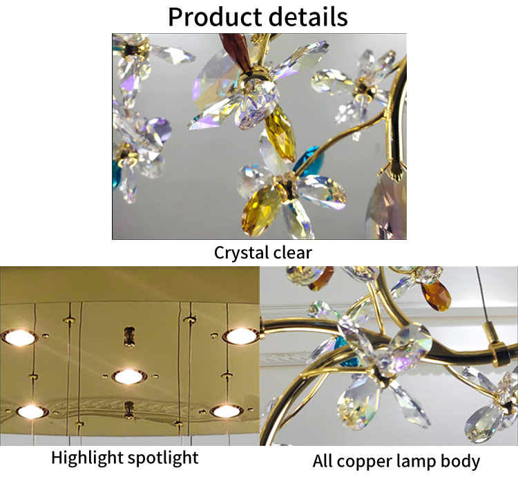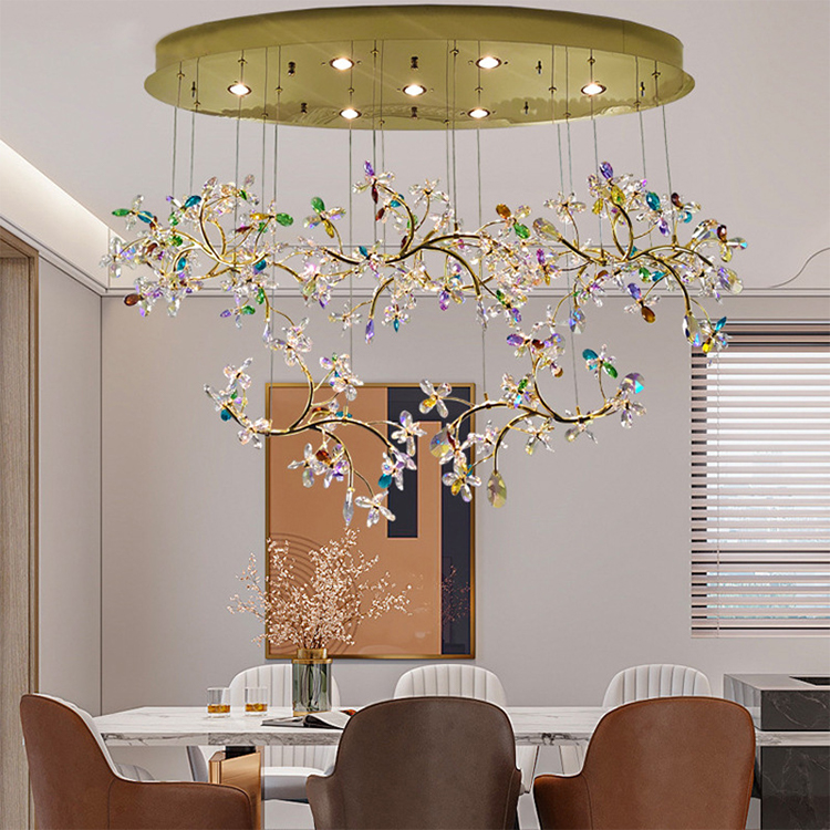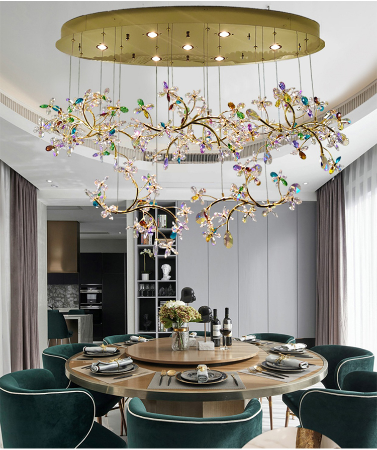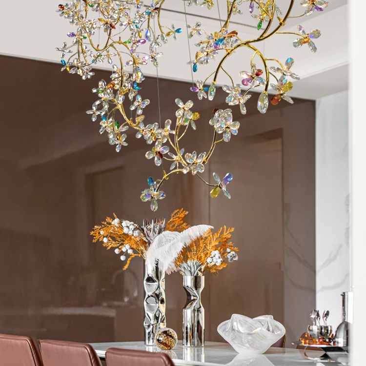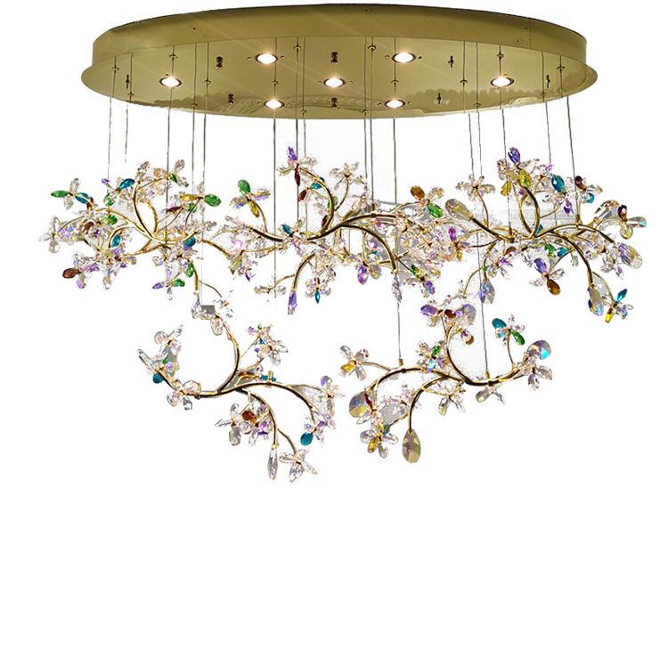 modern hotel villa led chandelier luxury flower crystal ceiling pendant light