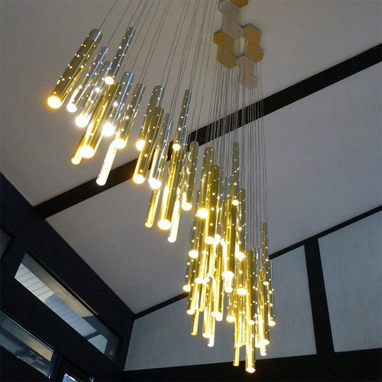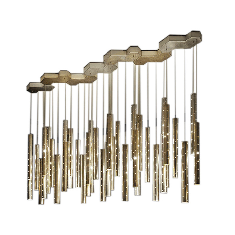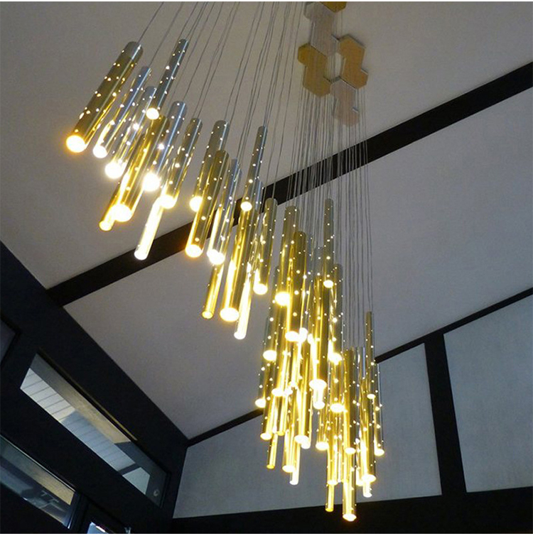 living room villa hotel stair long gold luxury modern crystal chandelier light