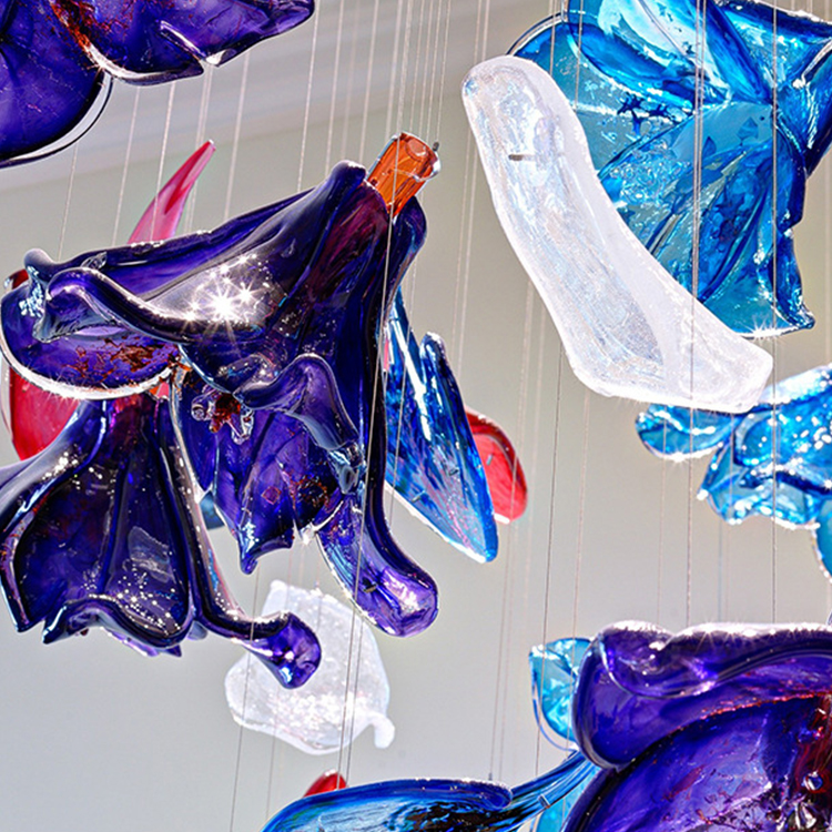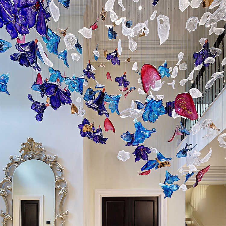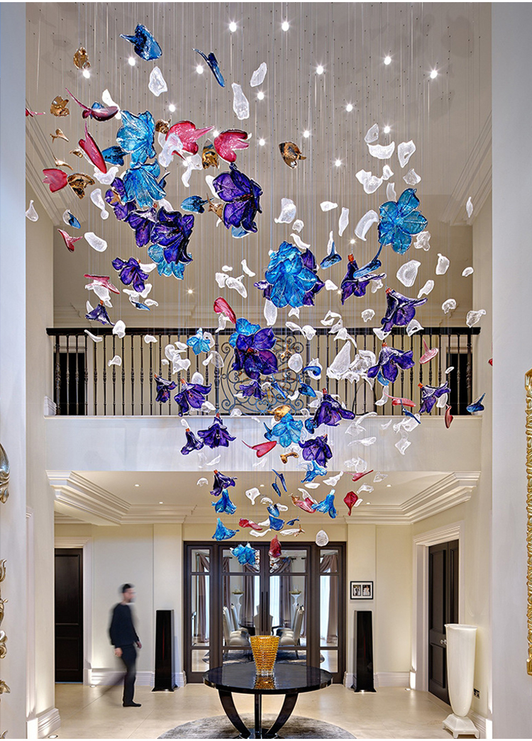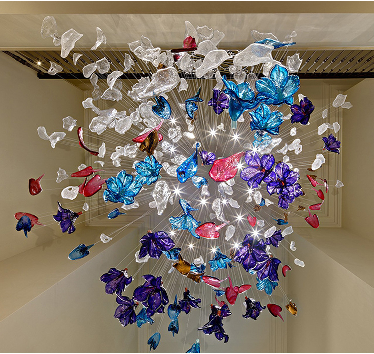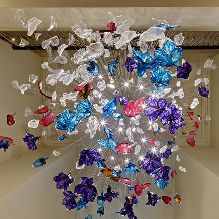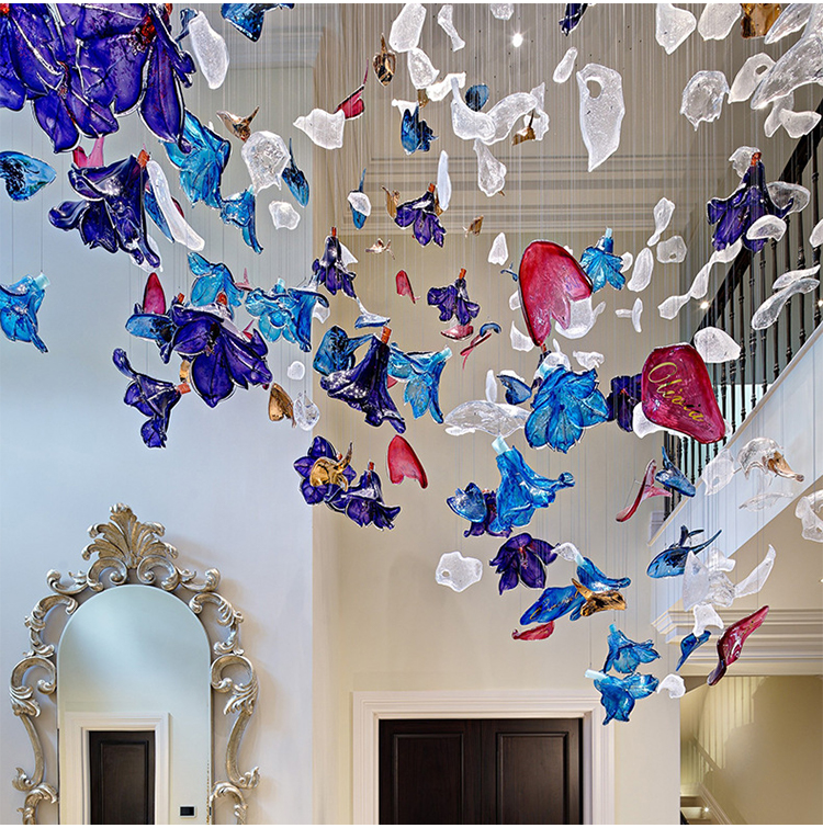 shopping mall decorative lighting large hotel lobby blown glass chandelier