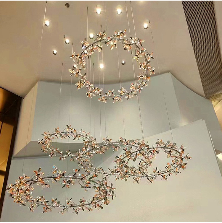 flower shape decorative hotel lobby staircase custom modern led chandelier