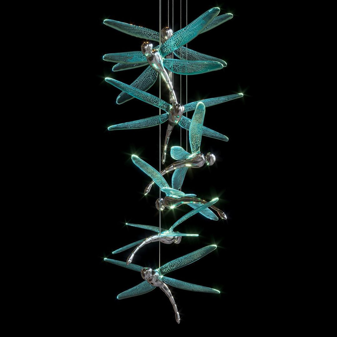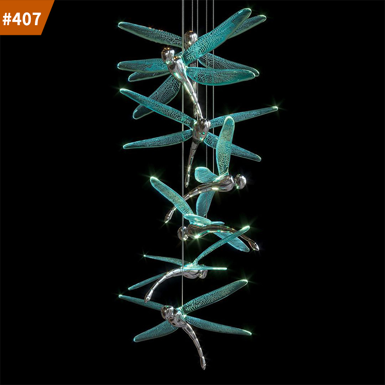 glass pendant lamp with dragonfly shaped luxury hotel project for villa