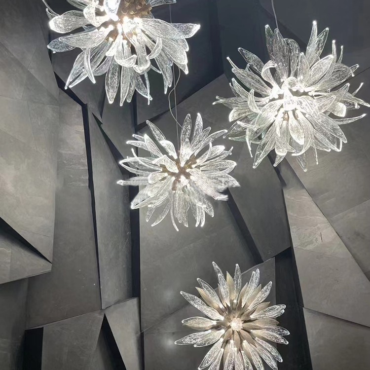 shopping mall decorative lighting large hotel lobby blown glass chandelier
