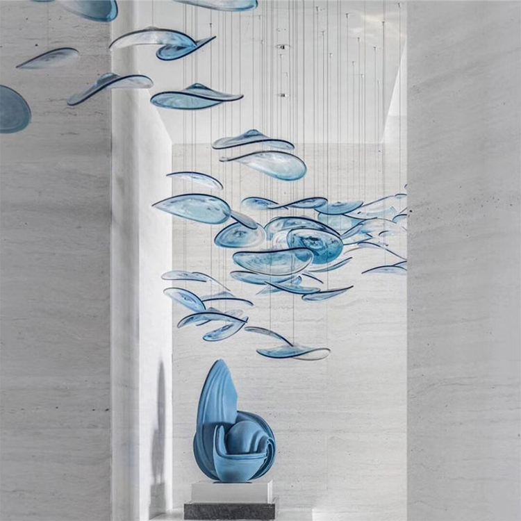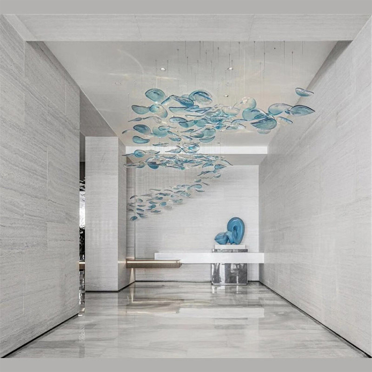 hotel restaurant hanging lights modern leave blown glass chandelier lighting
