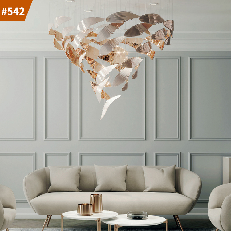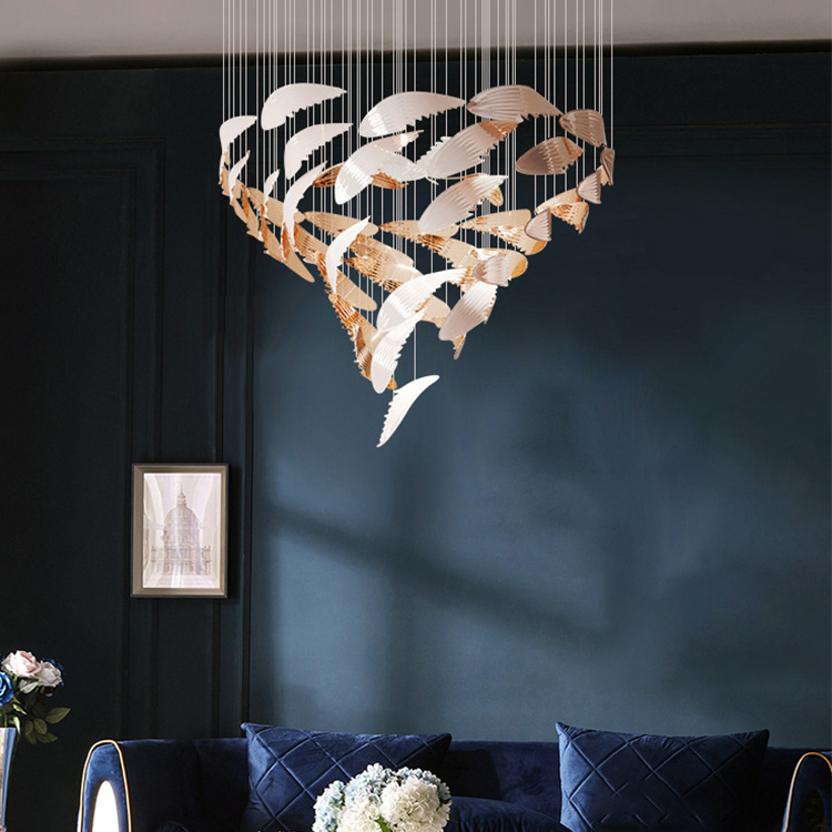 modern luxury large indoor ceiling hanging maple leaf led chandeliers and lamps