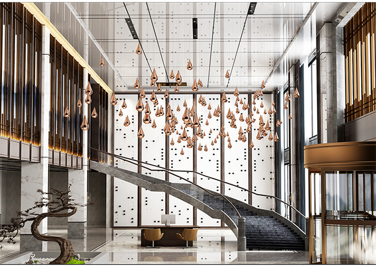 blown glass pendant light postmodern stairway clubhouse project chandelier light