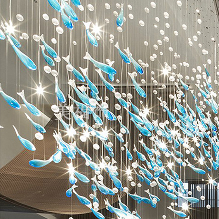 custom wedding decor luxury blown glass chandelier indoor fish pendant light