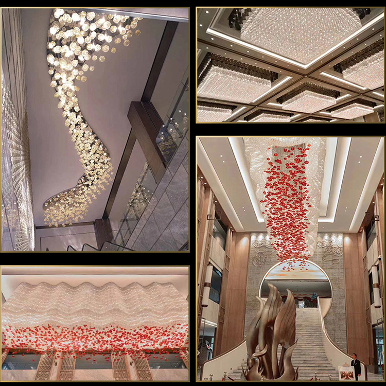 project large interior decoration engineering crystal ceiling led chandelier