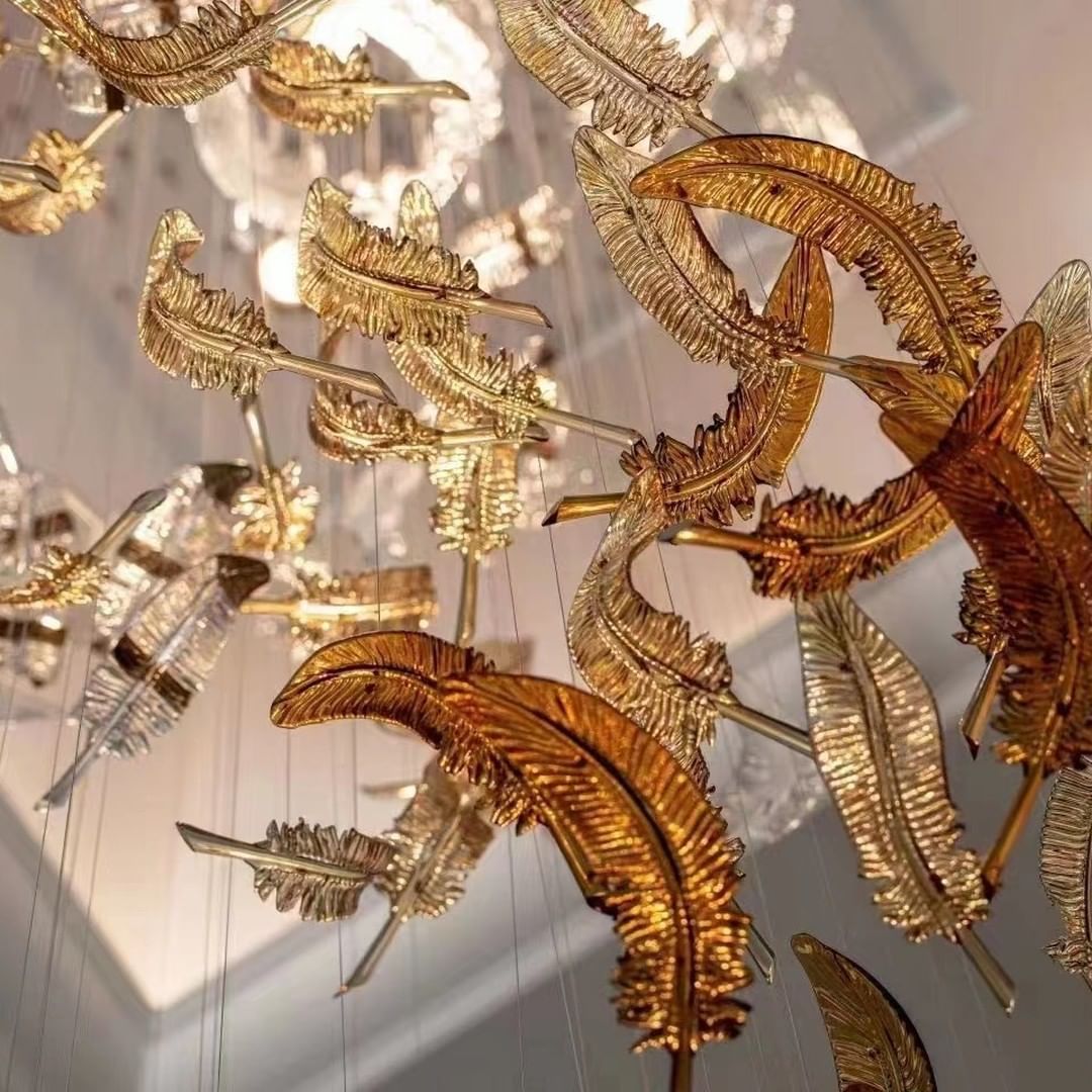 handmade glass pendant wedding lights modern feather glass luxury chandeliers