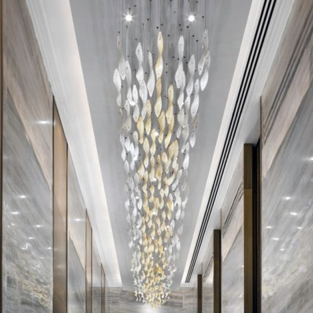 hotel lobby pendant light stone glass villa staircase chandelier pendant light
