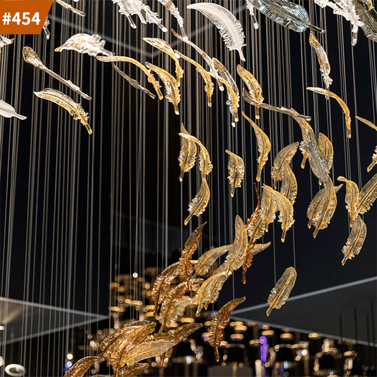custom modern large hotel leaf light luxury chandelier pendant crystal