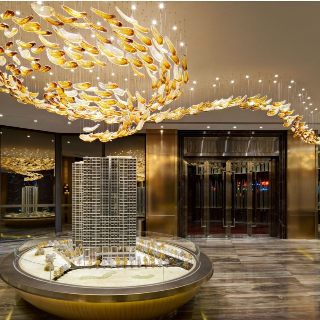 hotel lobby decoration lighting glass crystal ceiling chandeliers pendant light