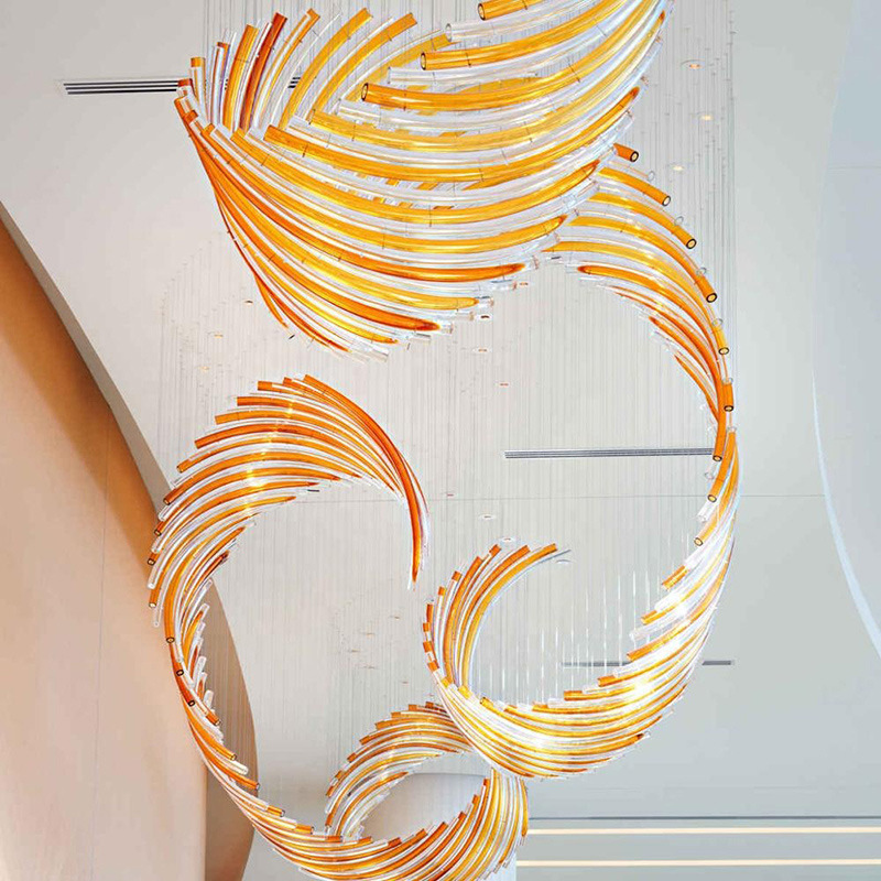 lighting hotel lobby hall staircase custom glass led ceiling chandelier