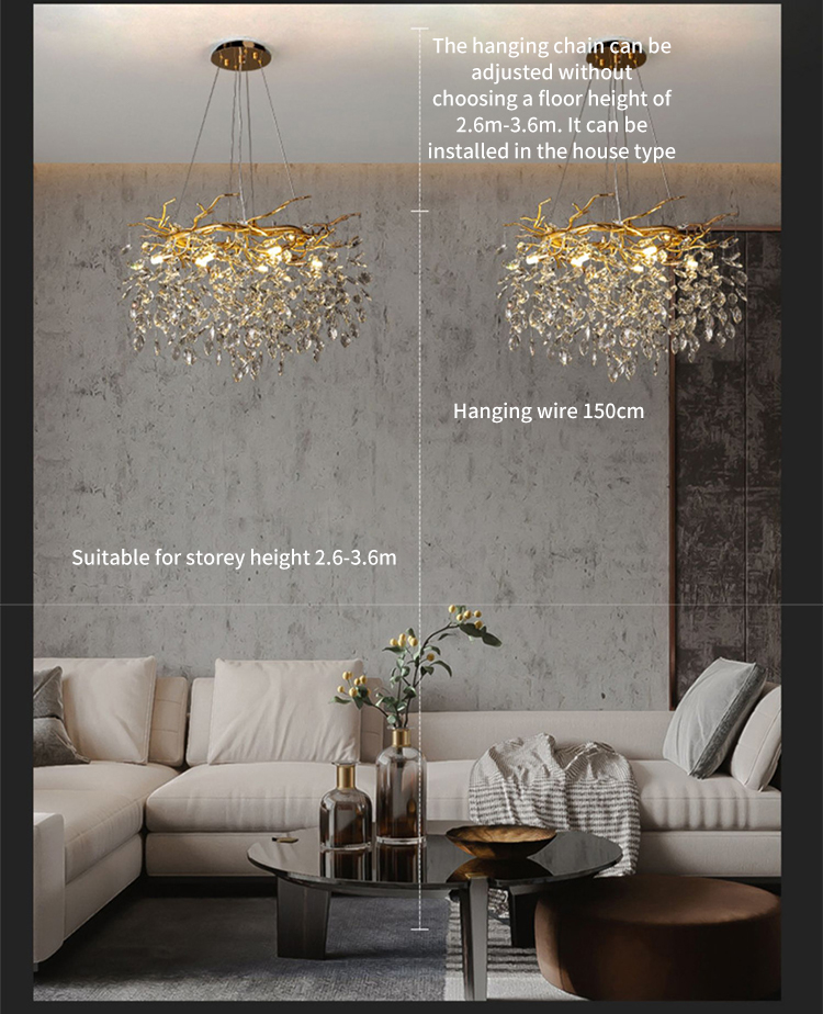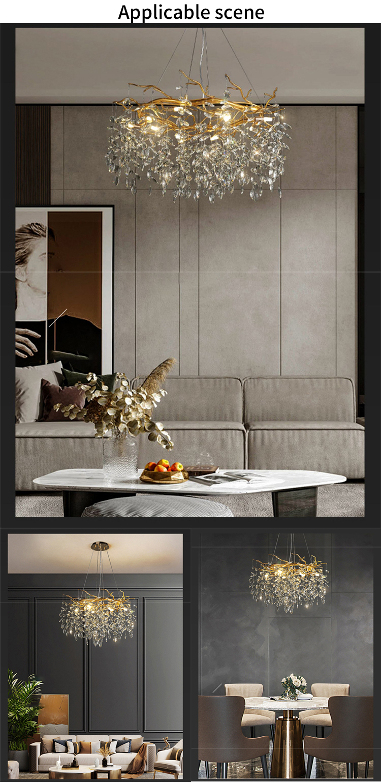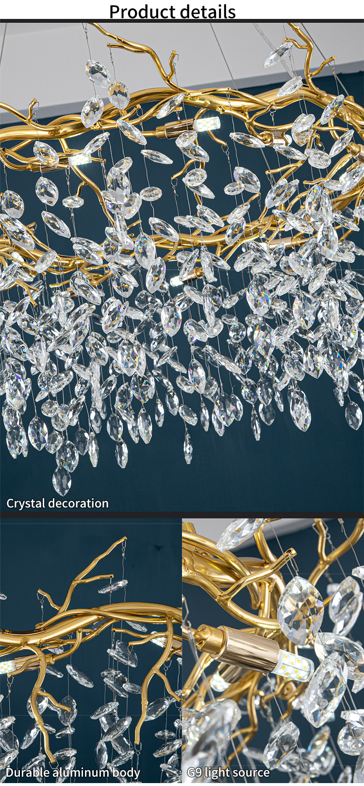 modern large branch hotel luxury ceiling pendant light led crystal chandeliers
