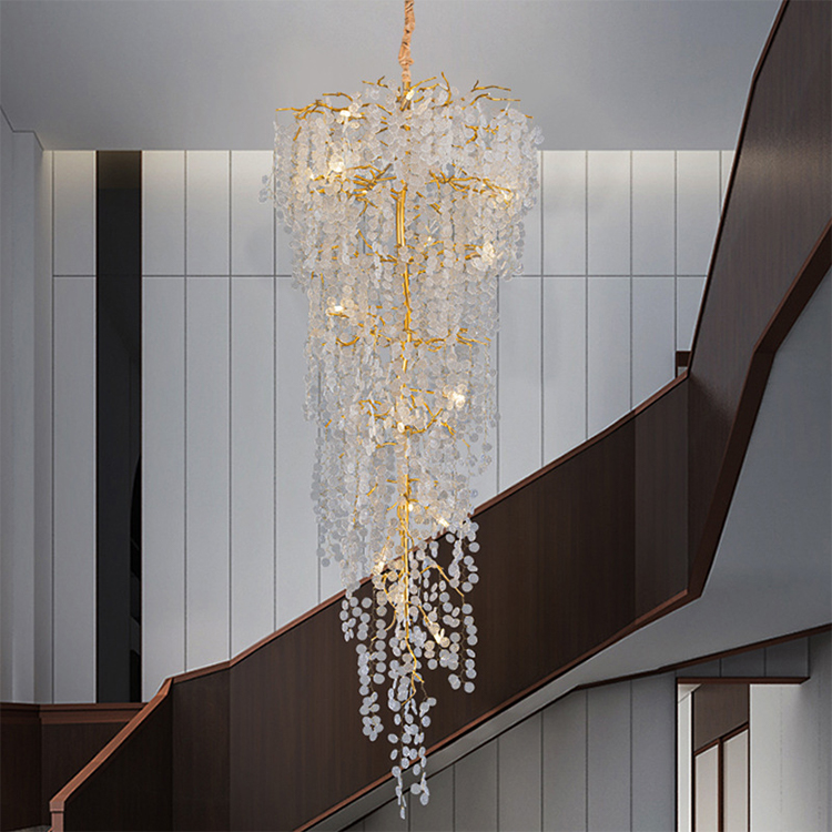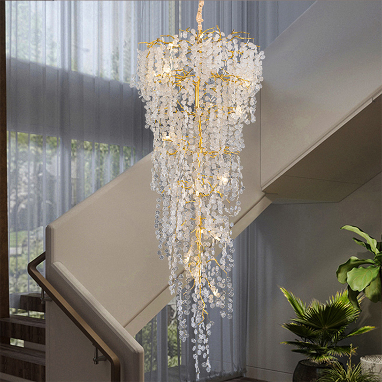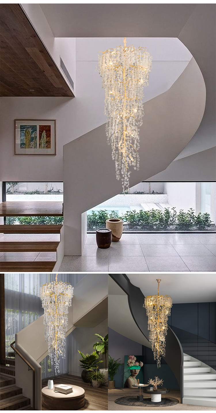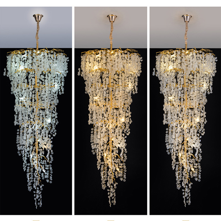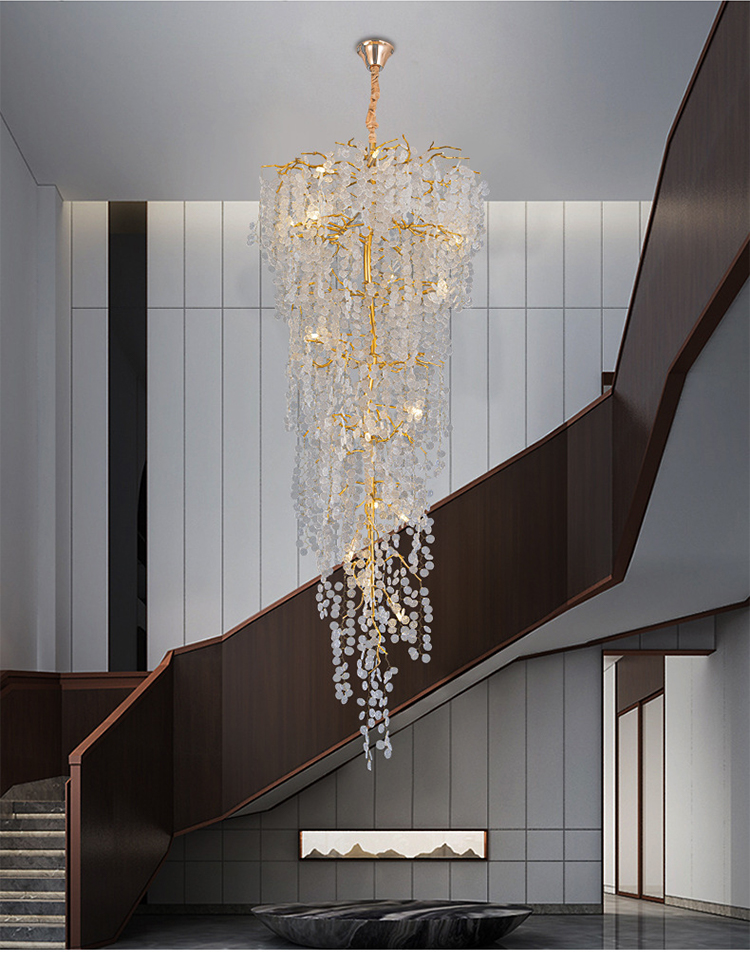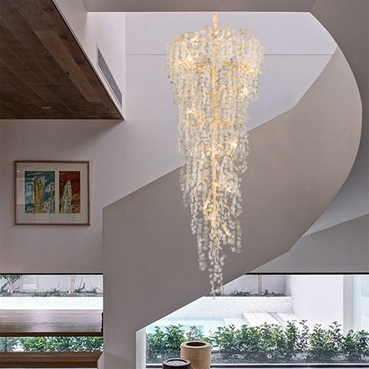 luxury hotel decoration pendant light crystal bead high ceiling chandeliers