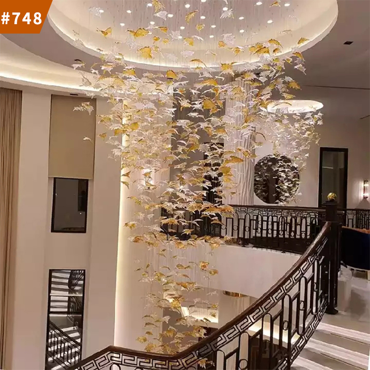 hotel lobby villa large project luxury butterfly staircase crystal chandelier