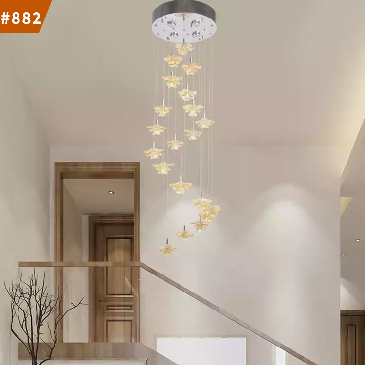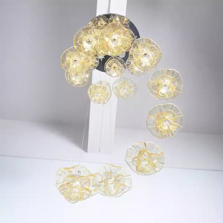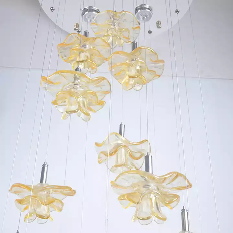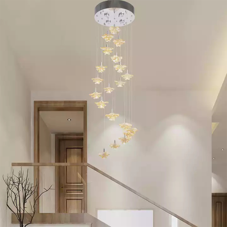 lighting custom light luxury staircase hall hotel glass led chandelier lamp