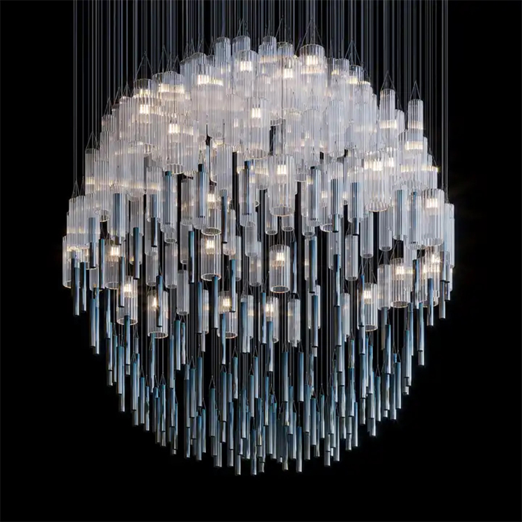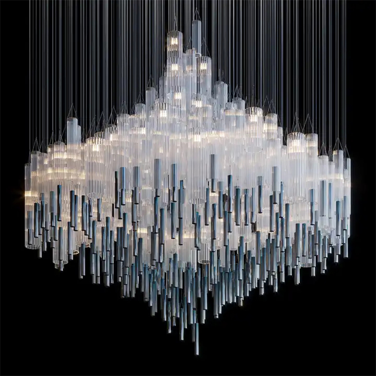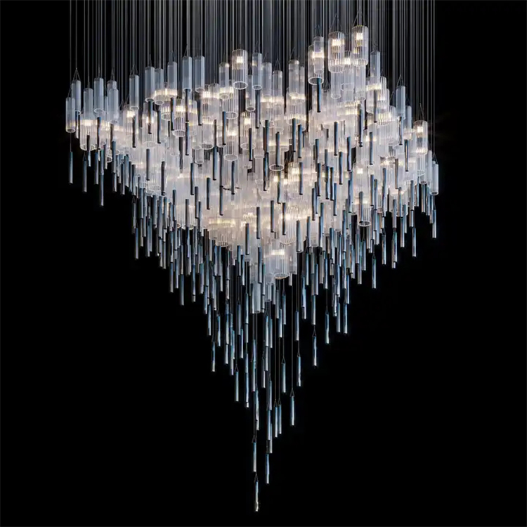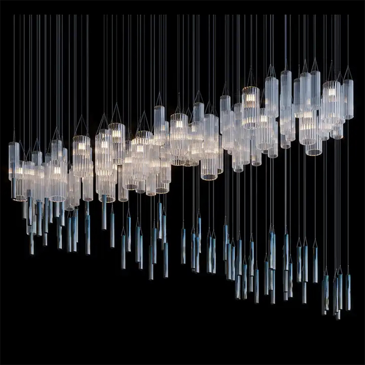 nordic commercial hotel lobby stair custom crystal long white chandelier light