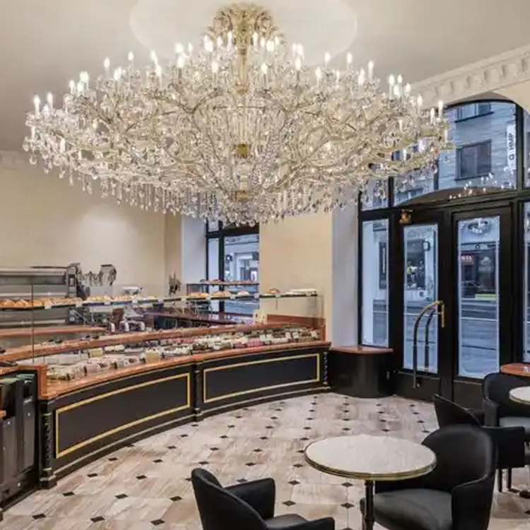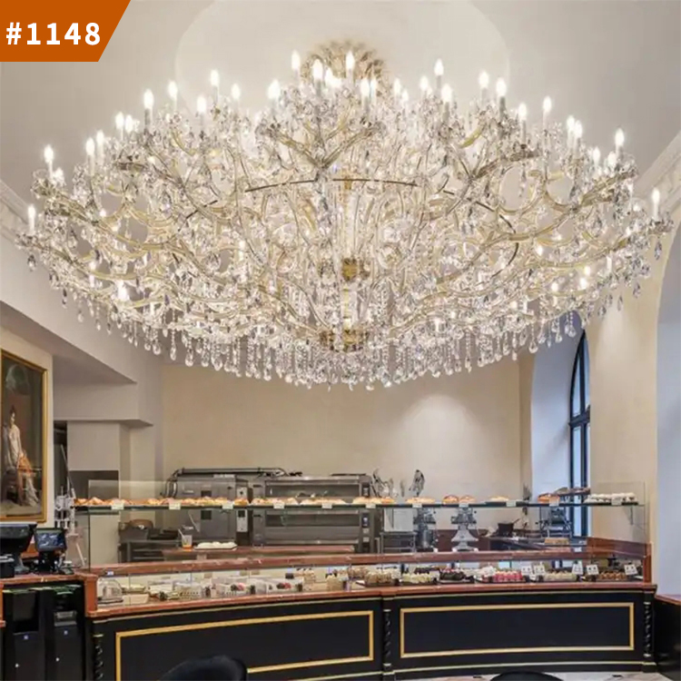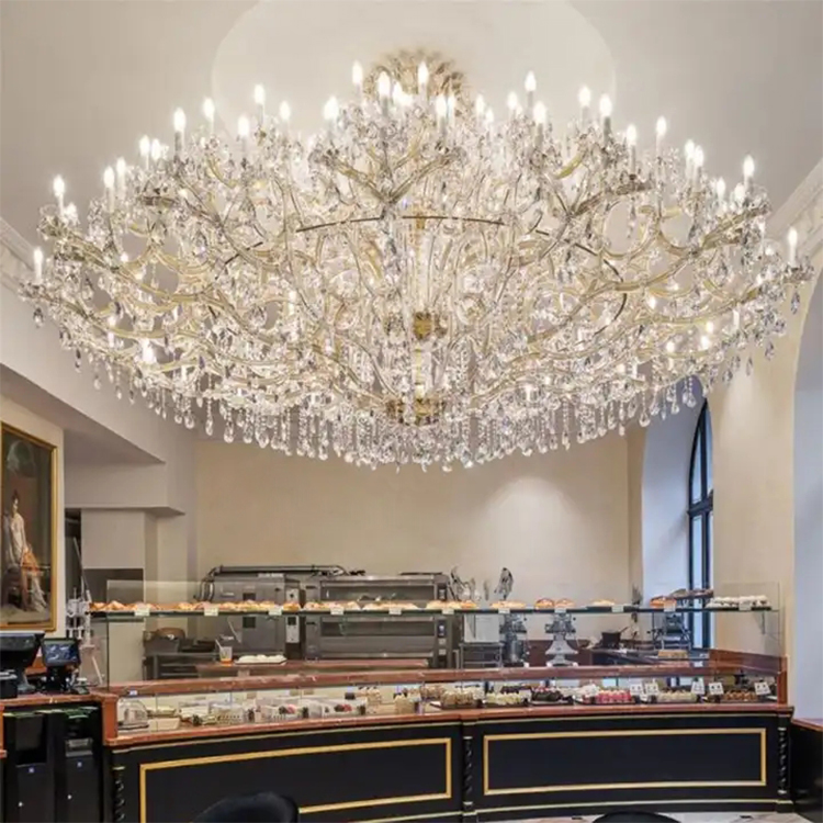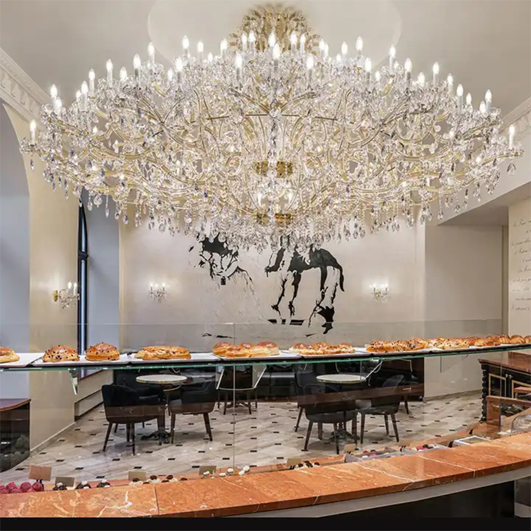luxury hotel lobby stairwell high ceiling crystal pendant lighting chandelier
