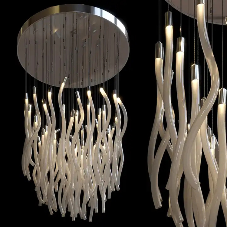 modern decoration hotel banquet hall long staircase round led chandelier lamp
