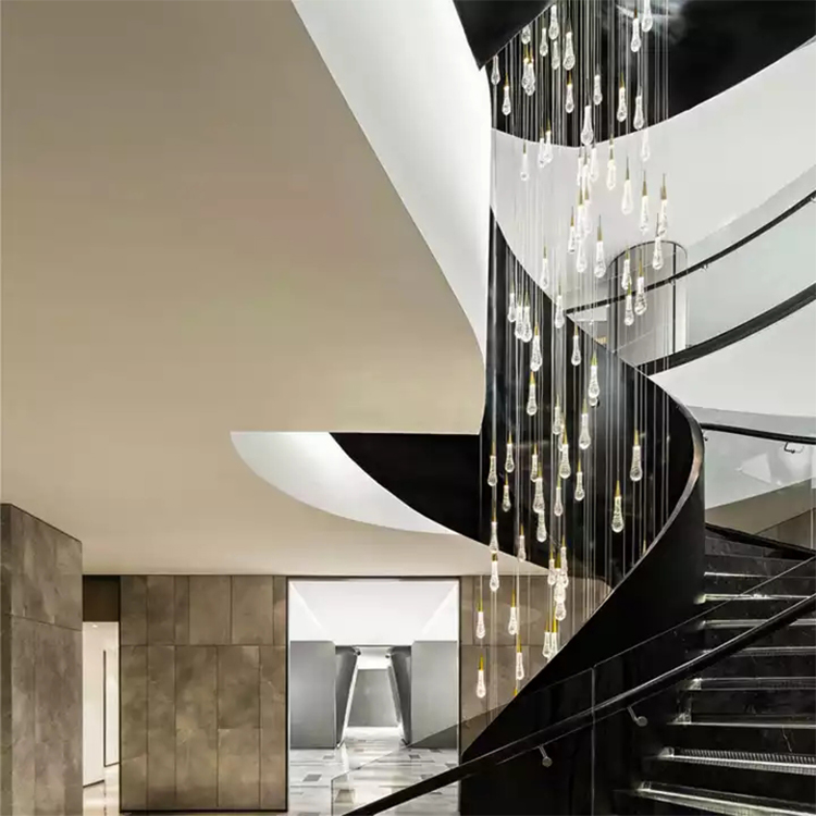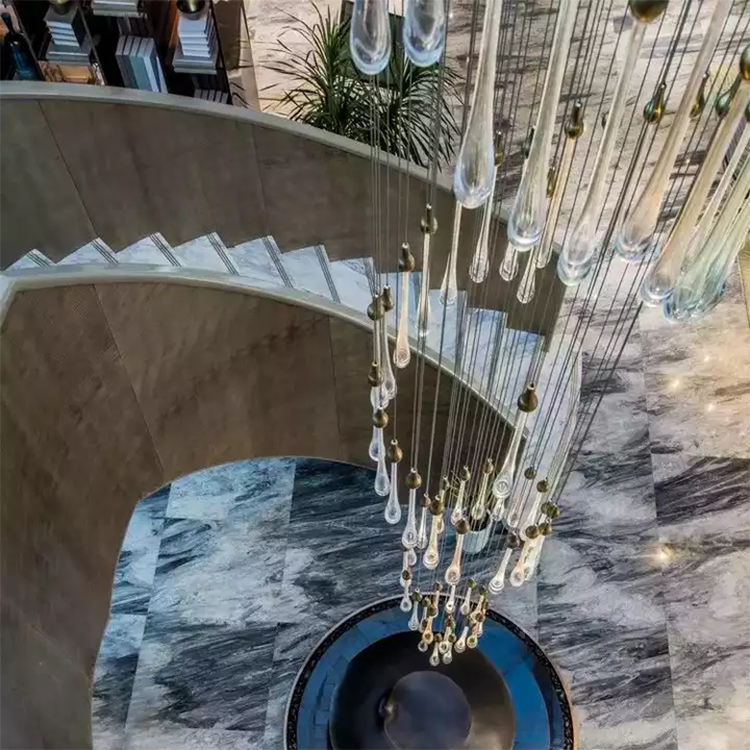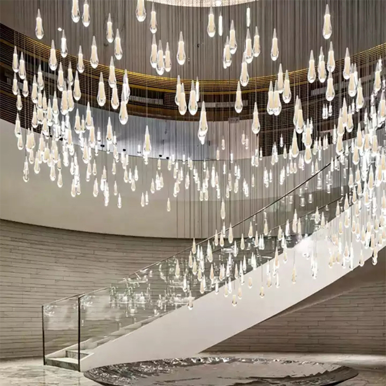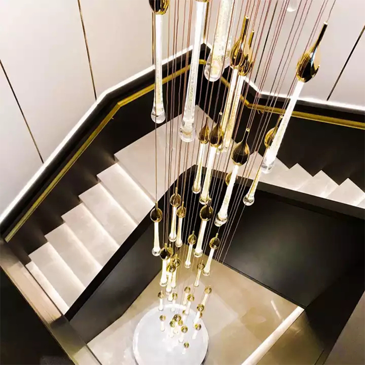 long pendant light raindrop crystal glass wedding stairway led chandelier light