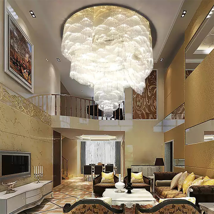 hotel villa modern crystal glass chandeliers high ceiling stair pendant lights