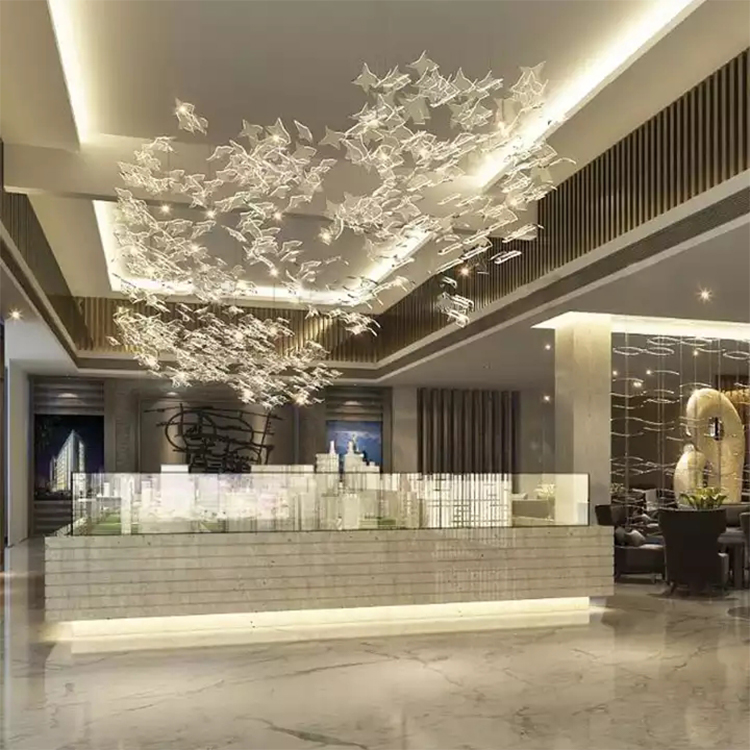 hotel lobby luxury glass bird shape modern ceiling led chandelier pendant light