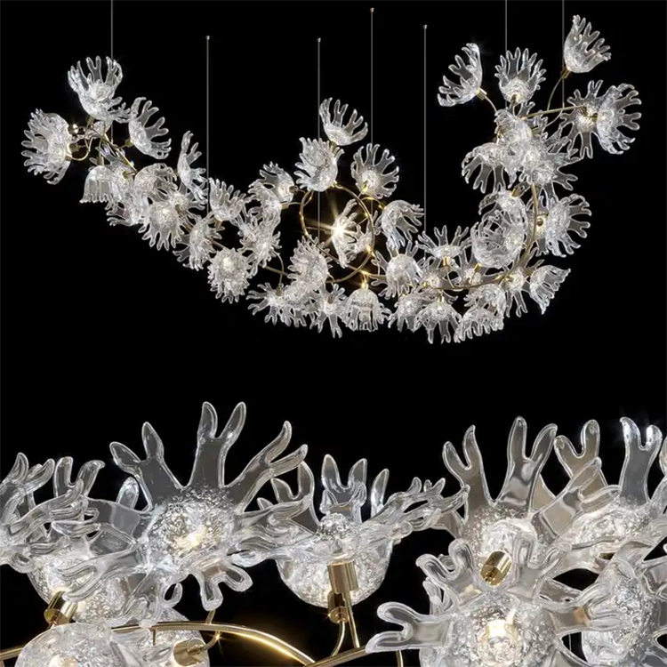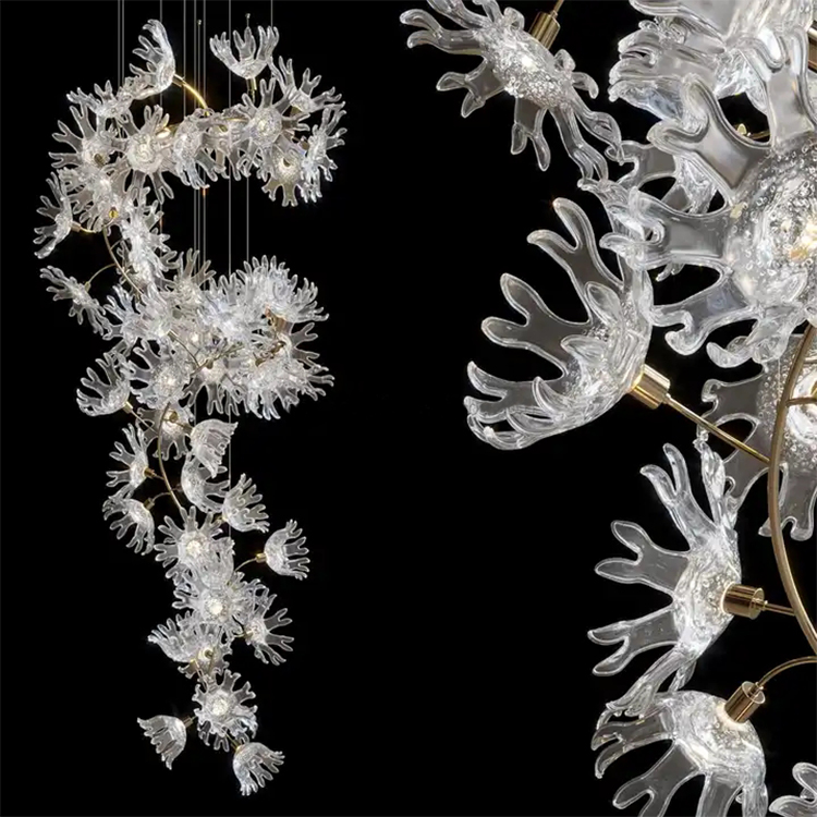 maple leaf hanging light decor banquet hall hotel lobby staircase led chandelier