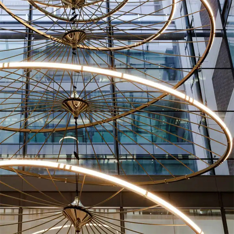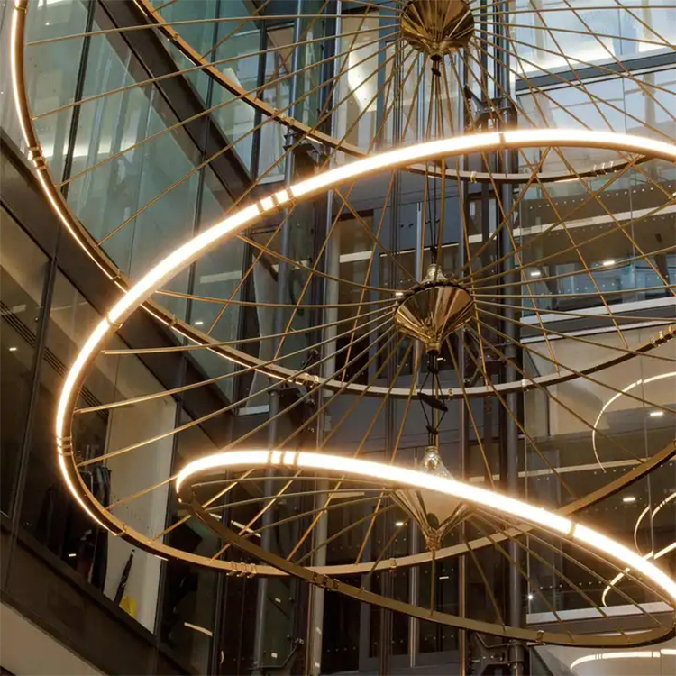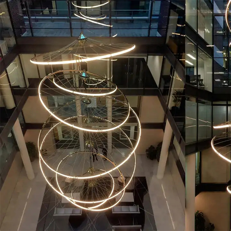 hotel dining lobby decoration project big pendant light staircase chandelier