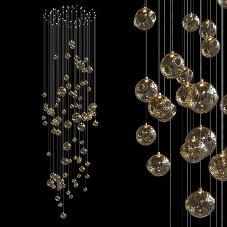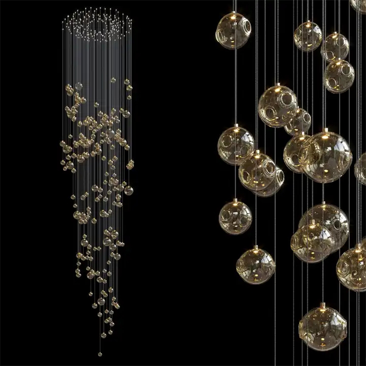 hotel dining lobby decoration project big pendant light staircase chandelier